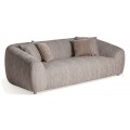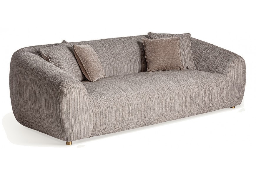 Luxusná art deco trojmiestna čalúnená taupé sedačka Gobala s kovovými zlatými nožičkami a štyrmi vankúšmi 230 cm