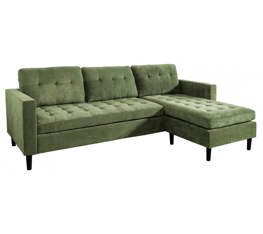 Moderná trojmiestna rohová sedačka Sallen v sýtozelenej farbe s poťahom s menčestrovým dizajnom z mikrovlákna, prináša kombináciu praktickosti a elegantného vzhľadu do každého interiéru. Univerzálne riešenie rohu umožňuje jednoduchú zmenu orientácie predĺženej časti podľa priestoru, čo oceníte najmä pri zariaďovaní menších miestností.