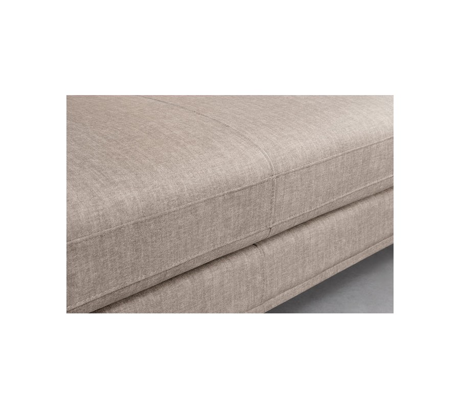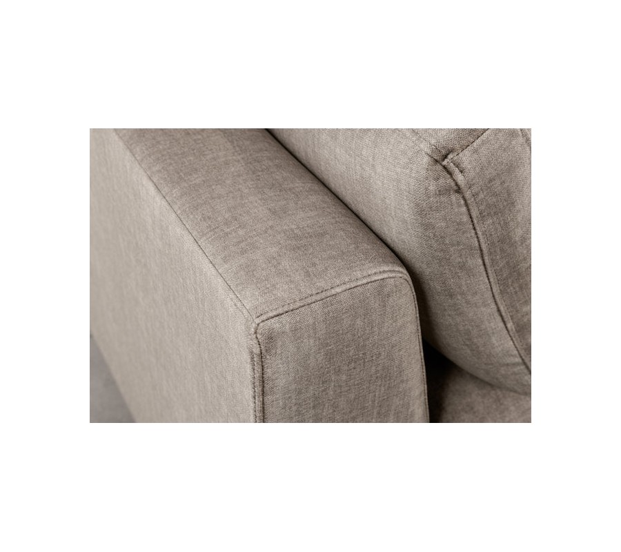 Operadlo tvoria tri veľké vankúše v obdĺžnikovom tvare, ktoré sú nielen vizuálne príťažlivé, ale poskytujú aj kvalitnú oporu pre chrbát. Bočné podlhovasté vankúše zabezpečujú ešte väčší komfort. Konštrukcia sedačky je pevná vďaka rámu z masívneho dreva, ktoré zaručuje stabilitu a dlhú životnosť. Kovové nožičky v čiernej farbe sú jemne kužeľovité, čím vytvárajú decentný kontrast k zamatovému povrchu a podčiarkujú industriálny štýl.