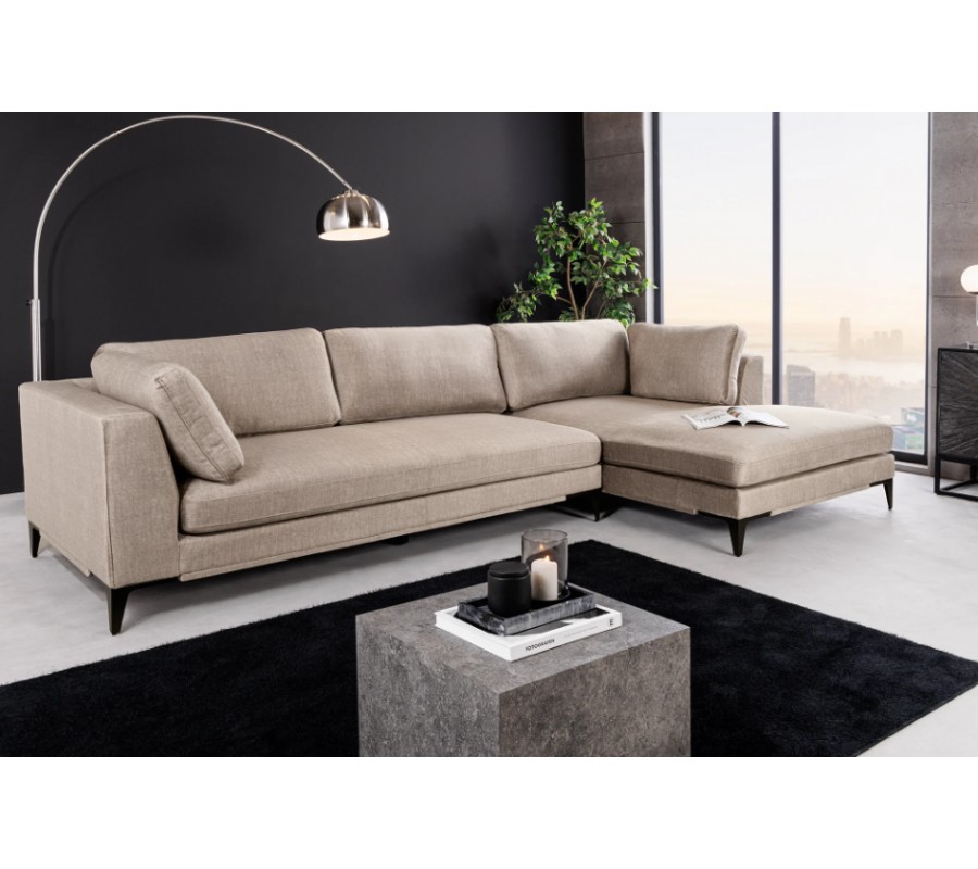 Luxusná dizajnová industriálna rohová sedačka Molara zaujme svojím elegantným taupé hnedým zamatovým poťahom, ktorý vytvára dojem mäkkosti a útulnosti, no zároveň si zachováva moderný výraz. Pravostranné riešenie s predĺženou stranou ponúka dostatok priestoru na pohodlné ležanie či odpočinok a robí zo sedačky všestranný prvok pre každodenné využitie.