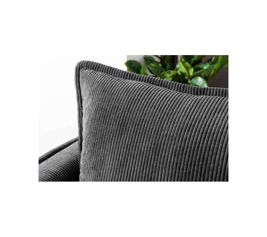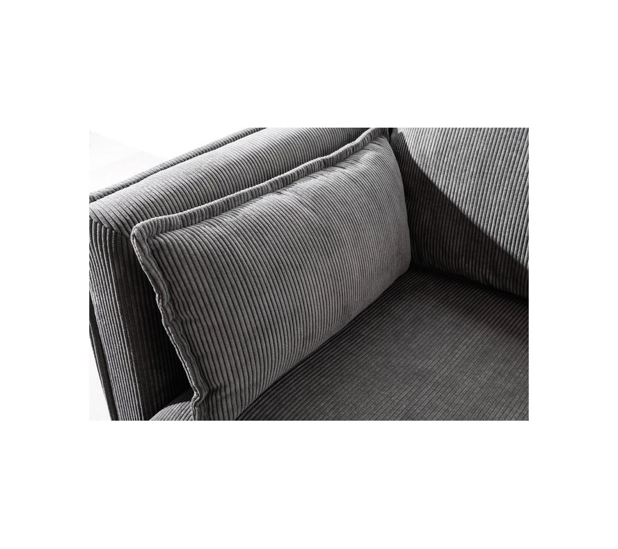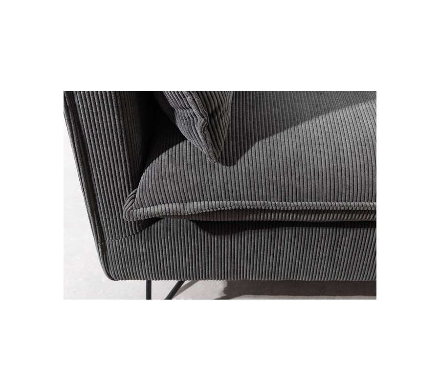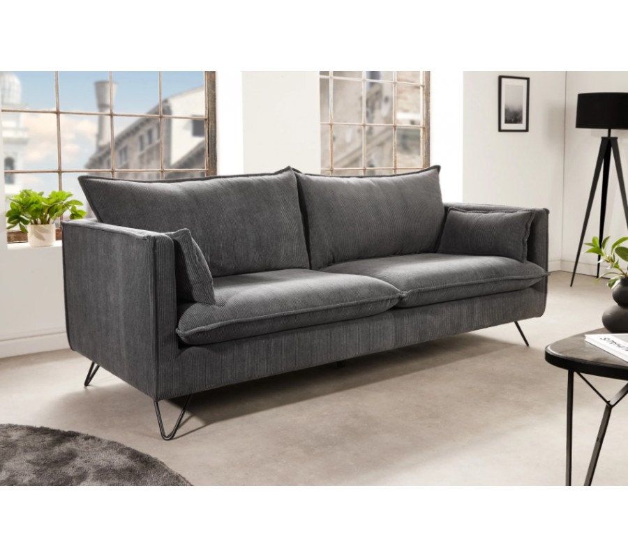 Moderná industriálna trojmiestna sedačka Amalfi je elegantným a zároveň pohodlným kúskom, ktorý upúta svojím jednoduchým obdĺžnikovým tvarom a ležérnym dizajnom. Je potiahnutá sivou menčestrovou látkou s jemným zvislým vrúbkovaním, ktoré dodáva povrchu jemnú textúru a vizuálnu hĺbku. Menčester je zároveň príjemný na dotyk, mäkký, ale zároveň odolný – ideálny na každodenné používanie.