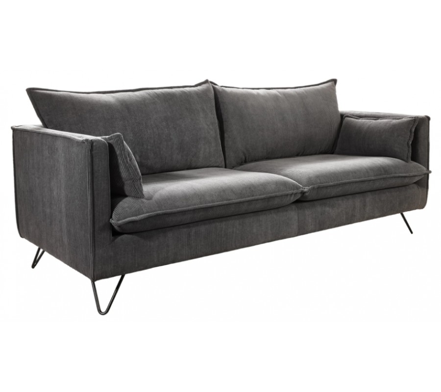 Moderná industriálna čalúnená trojmiestna menčestrová sedačka Amalfi v sivej farbe s čiernymi kovovými nožičkami 195 cm