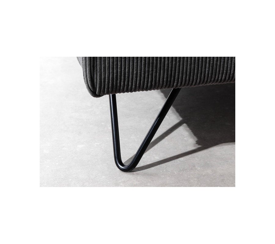 Výrazným vizuálnym prvkom sú čierne kovové nožičky v tenkom trojuholníkovom tvare, ktoré sa smerom von mierne rozchádzajú. Vďaka tejto konštrukcii pôsobí sedačka opticky ľahšie a zároveň zabezpečuje stabilitu. Kovové nožičky navyše zvyšujú vzdušnosť priestoru a uľahčujú upratovanie pod sedačkou.