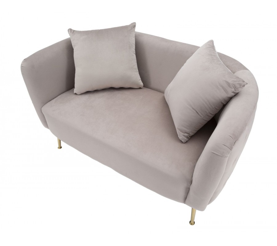 Art deco obdĺžniková sivá čalúnená dvojmiestna sedačka Lienne a oblými opierkami na zlatých nožičkách 127 cm