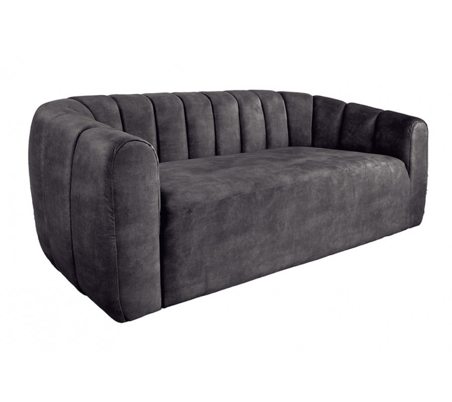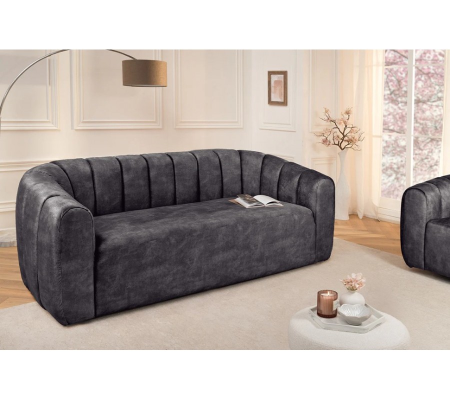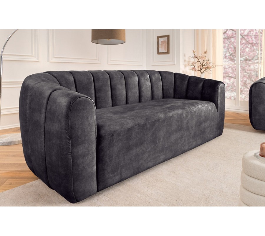 Moderná trojmiestna zamatová sedačka Alis v antracitovej farbe s oblými opierkami a vertikálnym prešívaním 202 cm