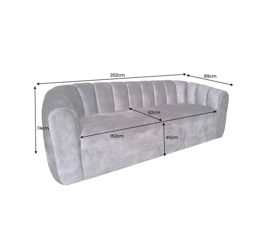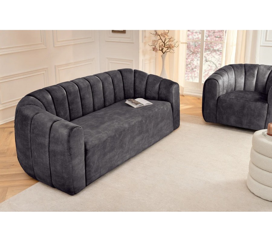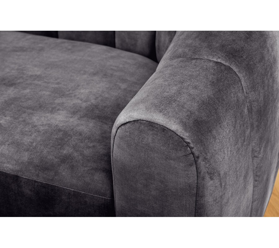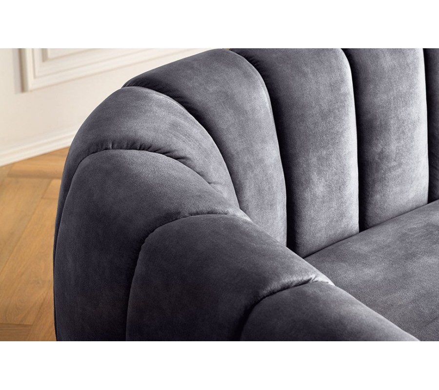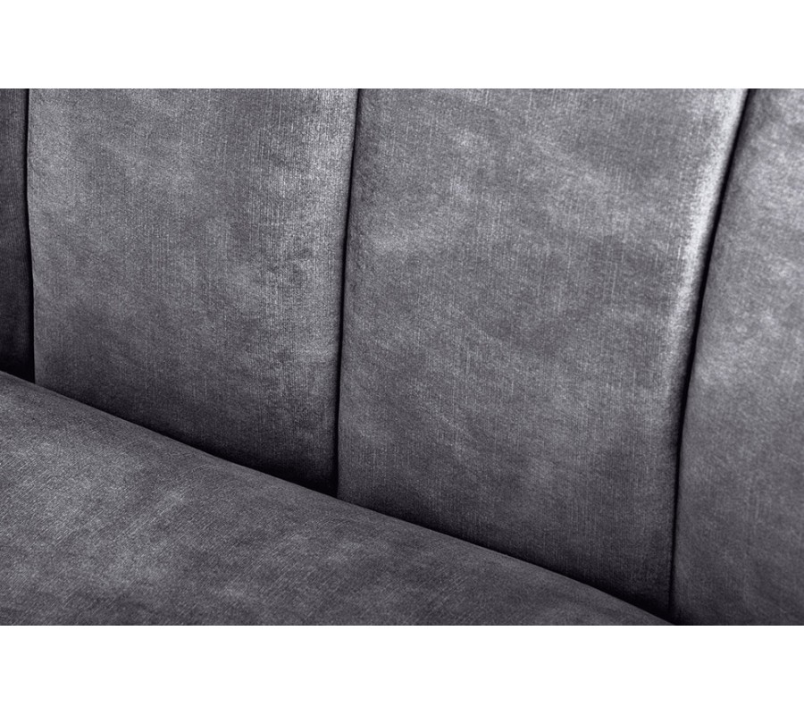 Trojmiestna sedačka Alis predstavuje harmonické spojenie moderného dizajnu, komfortu a nadčasovej elegancie. Jej výrazný vzhľad dotvára zamatový poťah v antracitovej farbe, ktorý pôsobí luxusne a zároveň jemne na dotyk.