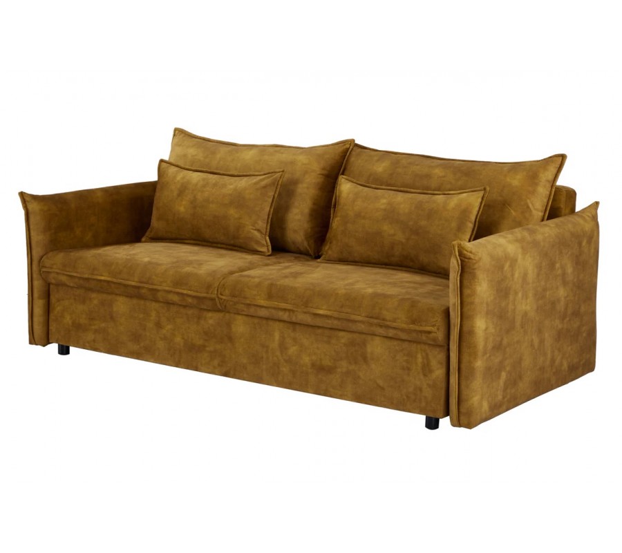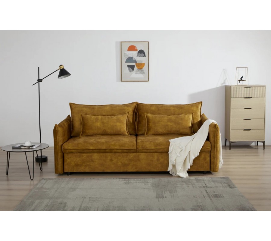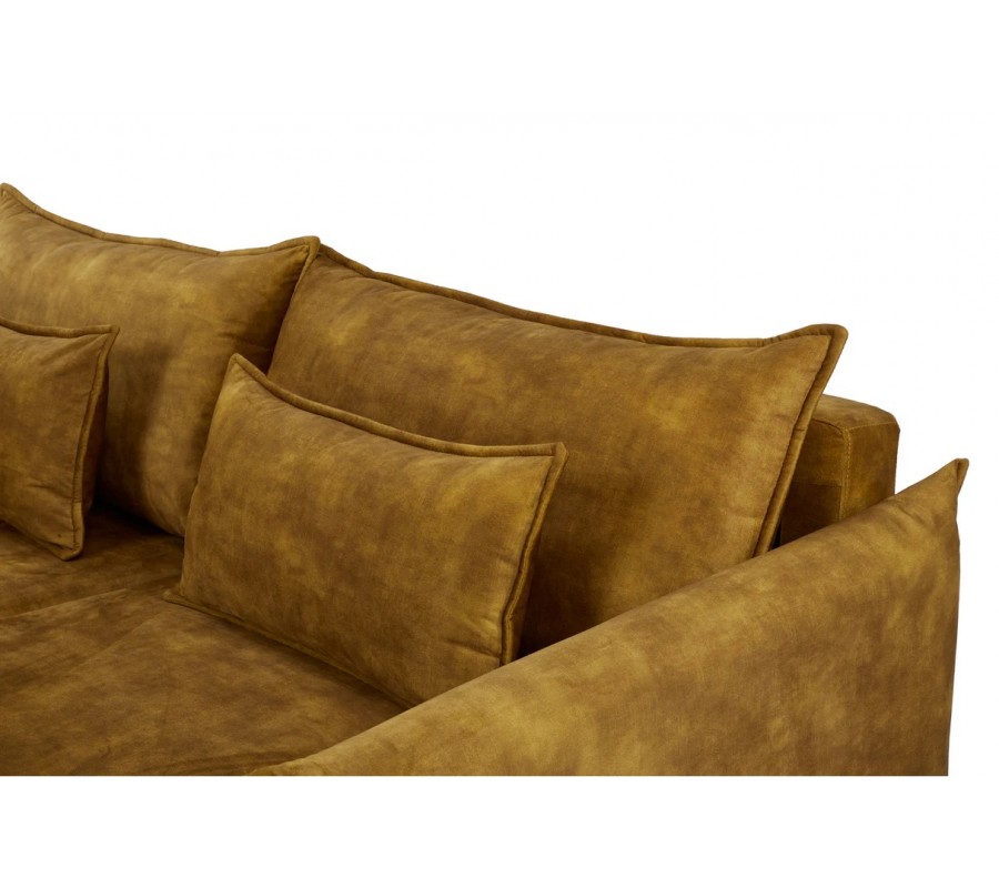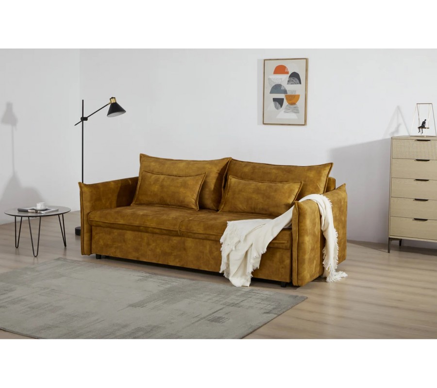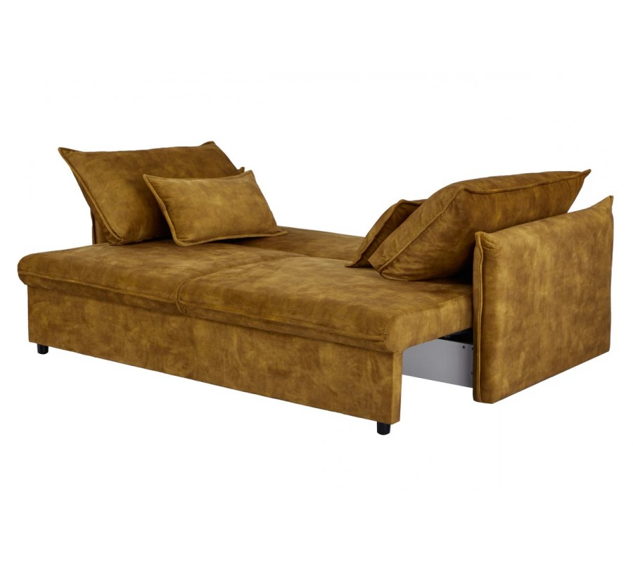Sedačka Heaven prinesie do vašej obývačky moderný dizajn a maximálny komfort. Zamatový poťah v horčicovom žltom odtieni oživí priestor sviežim farebným akcentom a oceníte aj praktický úložný priestor a rozkladacie lôžko.