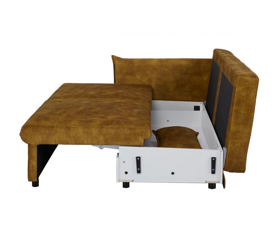 Pod sedacou časťou je umiestnený uzatvárateľný úložný priestor, ideálny na deky, vankúše či posteľnú bielizeň. Sedačku je tiež možné rozložiť na lôžko s rozmerom 190x145 cm a tento nábytok je tak ideálny do menších bytov či do obývačky, ktorú plánujete príležitostne využívať ako hosťovskú izbu.