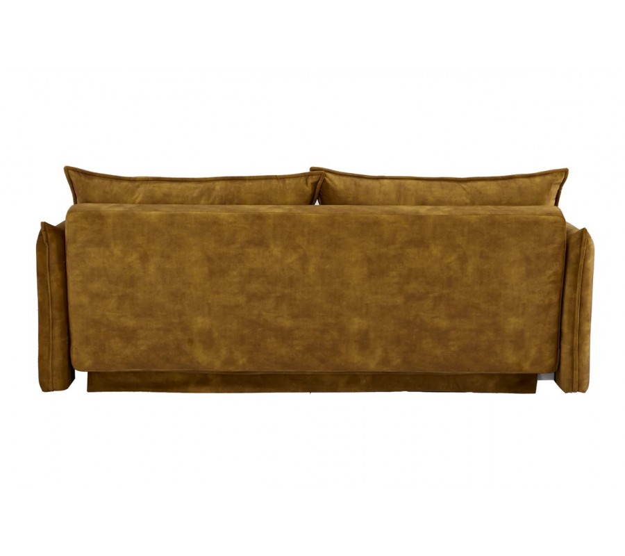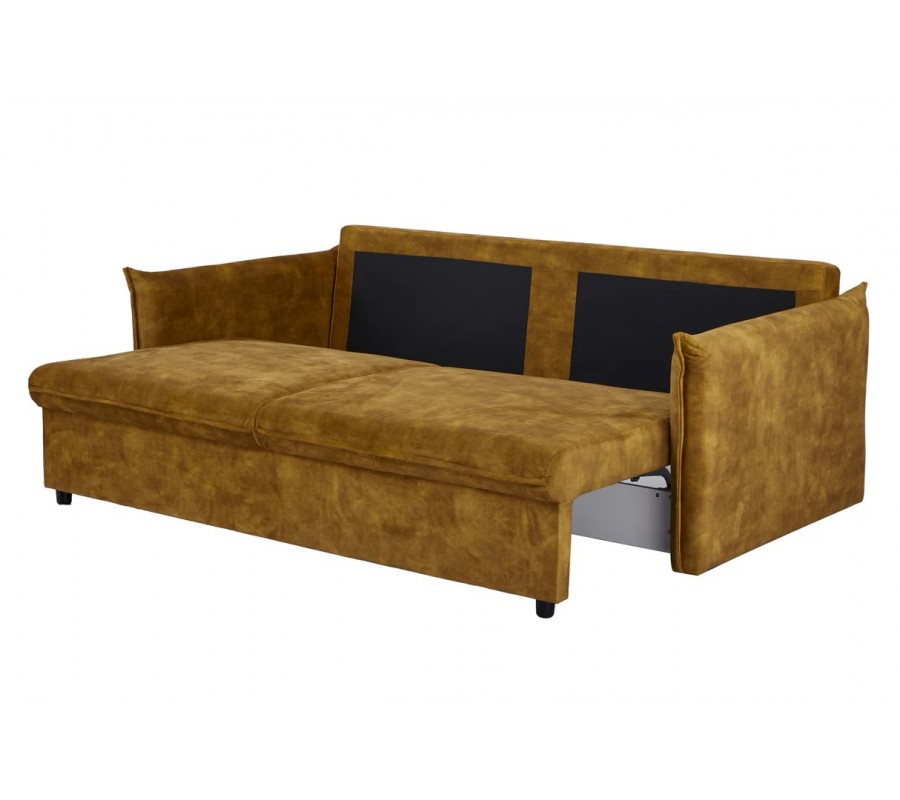 Moderná rozkladacia trojsedačka Heaven s horčicovým žltým zamatovým poťahom a úložným priestorom 215 cm