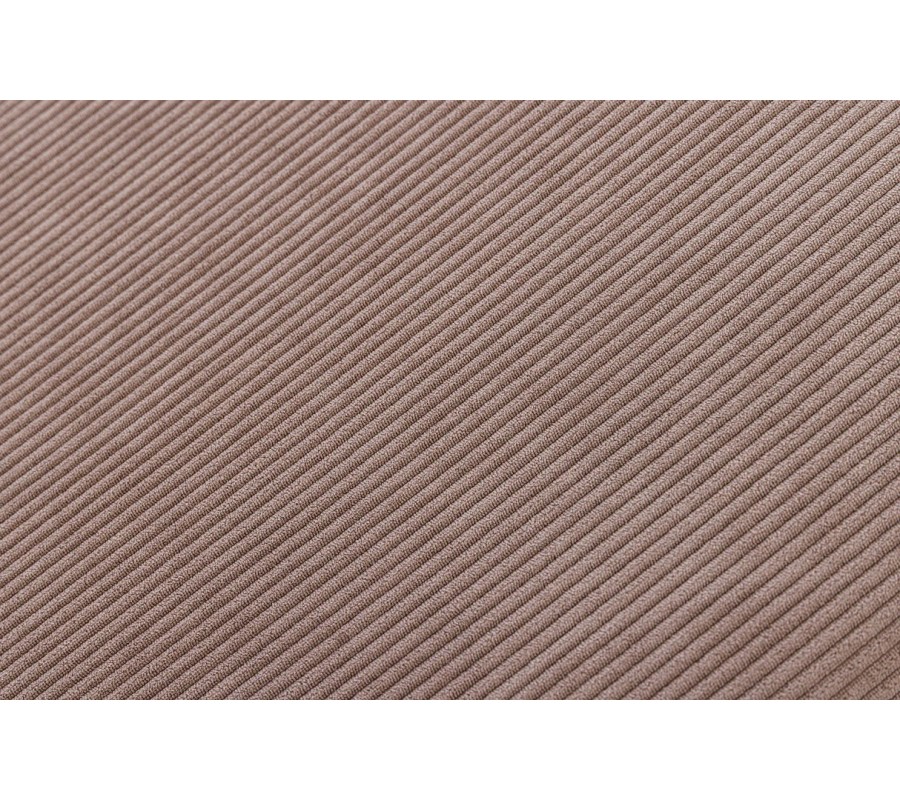 Trojmiestna sedačka Heaven vyniká svojím čistým obdĺžnikovým tvarom a neutrálnym taupe odtieňom, ktorý pôsobí nadčasovo a zároveň útulne. Celý povrch má jemne vrúbkovaný textilný poťah, ktorý je príjemný na dotyk a zvýrazňuje prirodzenú štruktúru látky. Komfort pri sedení zabezpečujú dva veľké vankúše ako opierky chrbta a dva bočné vankúše umiestnené pozdĺž podrúčok.