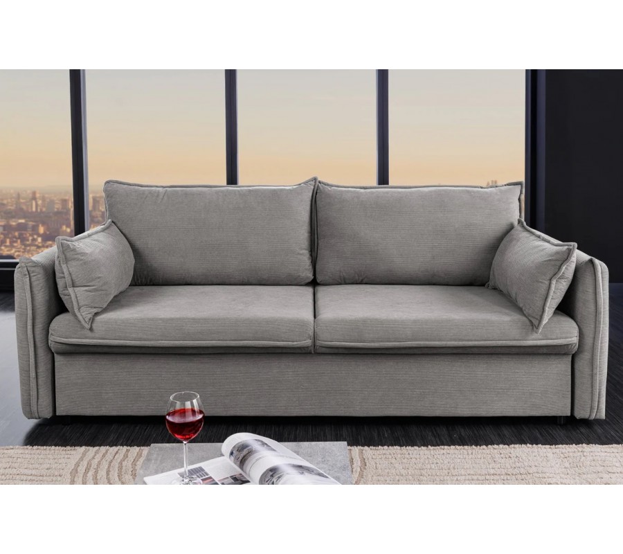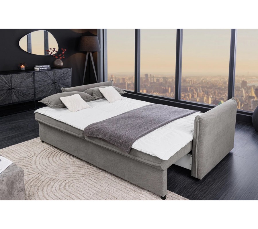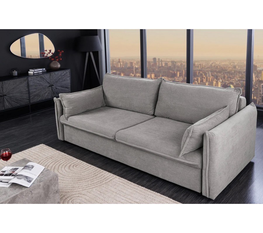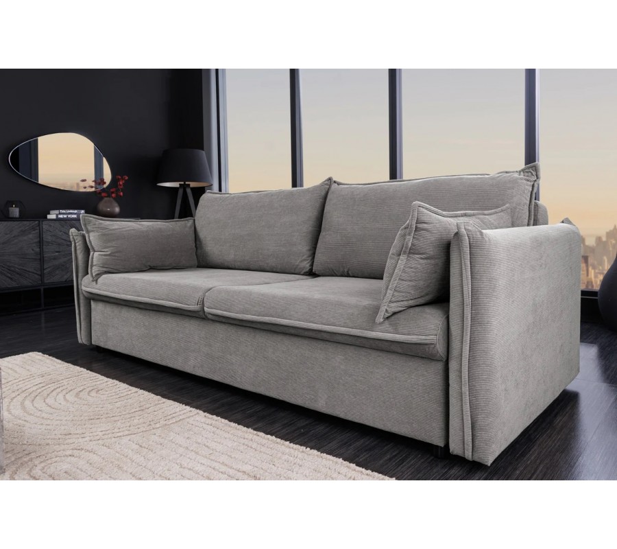 Moderná rozkladacia sivá obdĺžniková trojmiestna sedačka Heaven s vrúbkovaným poťahom a vankúšovými bočnými opierkami 215 cm