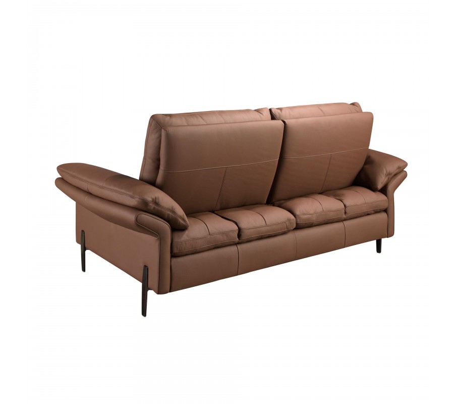 Luxusná kožená dvojsedačka Vita Naturale s hnedým poťahom s lineárnym prešívaním a tmavými chrómovými nohami 195 cm