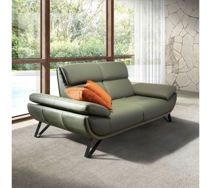 Luxusná kožená dvojmiestna sedačka Vita Naturale v olivovej zelenej farbe s polohovateľnou chrbtovou opierkou 205 cm