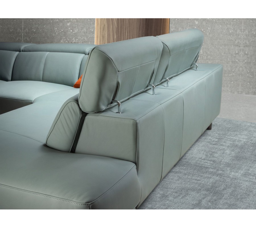 Rohová sedačka Vita Naturale spája luxus pravej kože s moderným talianskym dizajnom. Tyrkysovozelené farebné prevedenie dodá vašej obývačke unikátny charakter a polohovateľné opierky hlavy a podnožky zaručia maximálny komfort.