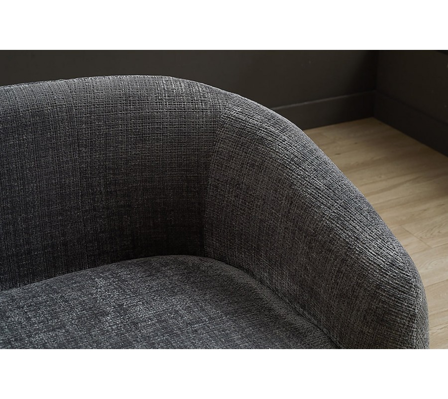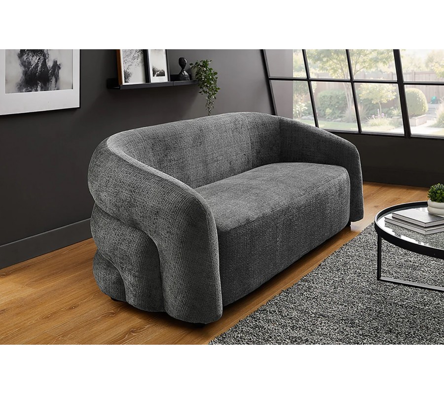 Nenápadné čierne nohy dodávajú sedačke vizuálnu ľahkosť a vytvárajú jemný kontrast k tmavosivému čalúneniu, pričom podporujú moderný a minimalistický charakter modelu. Vnútorný sedací priestor so šírkou 159 cm poskytuje komfortné miesto na sedenie pre dve až tri dospelé osoby.
