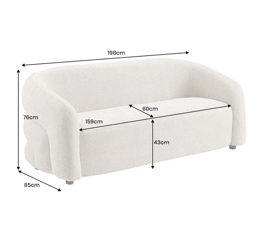 Kvalitné penové výplne zabezpečujú pohodlné sedenie a spoľahlivú oporu pri každodennom používaní. Sedačka spája moderný dizajn, mäkké tvary a vysoký komfort, vďaka čomu je ideálnym miestom na oddych aj spoločné chvíle.
