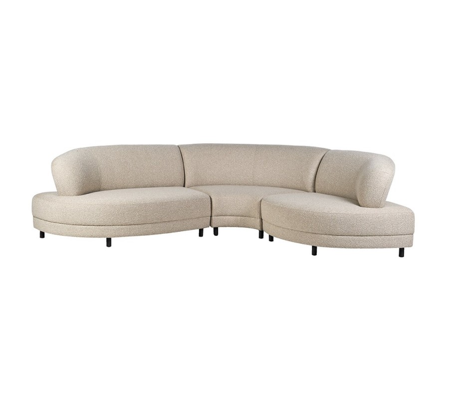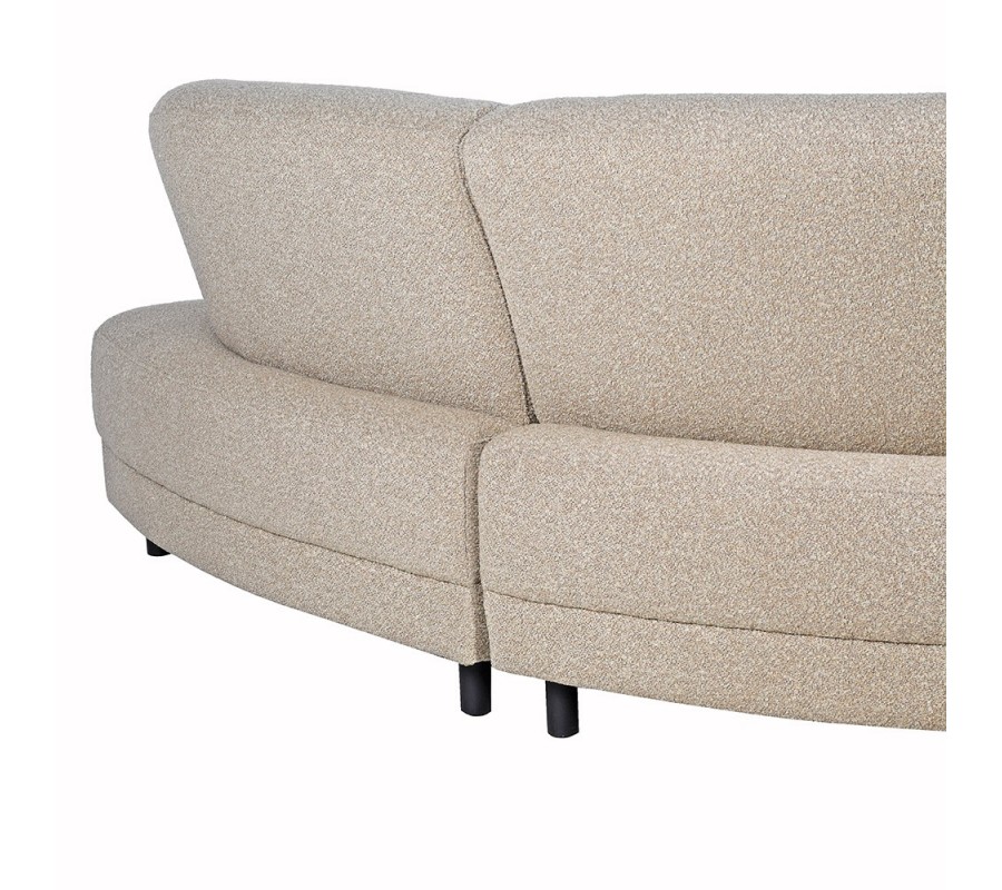 Luxusná moderná buklé sedačka Sierra zaobleného tvaru s béžovým poťahom a čiernymi nohami 310 cm