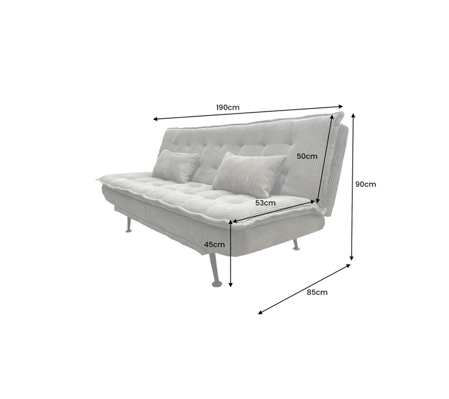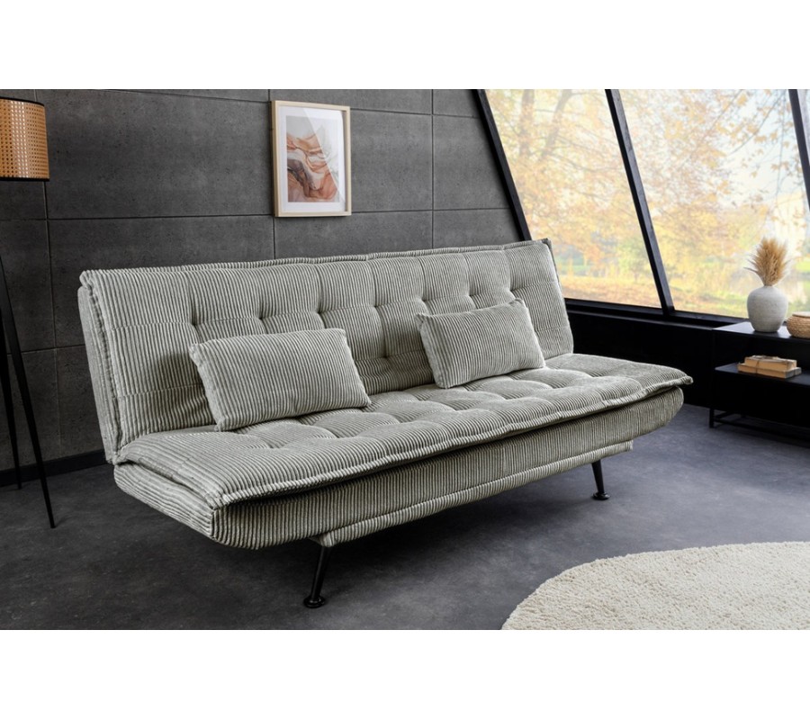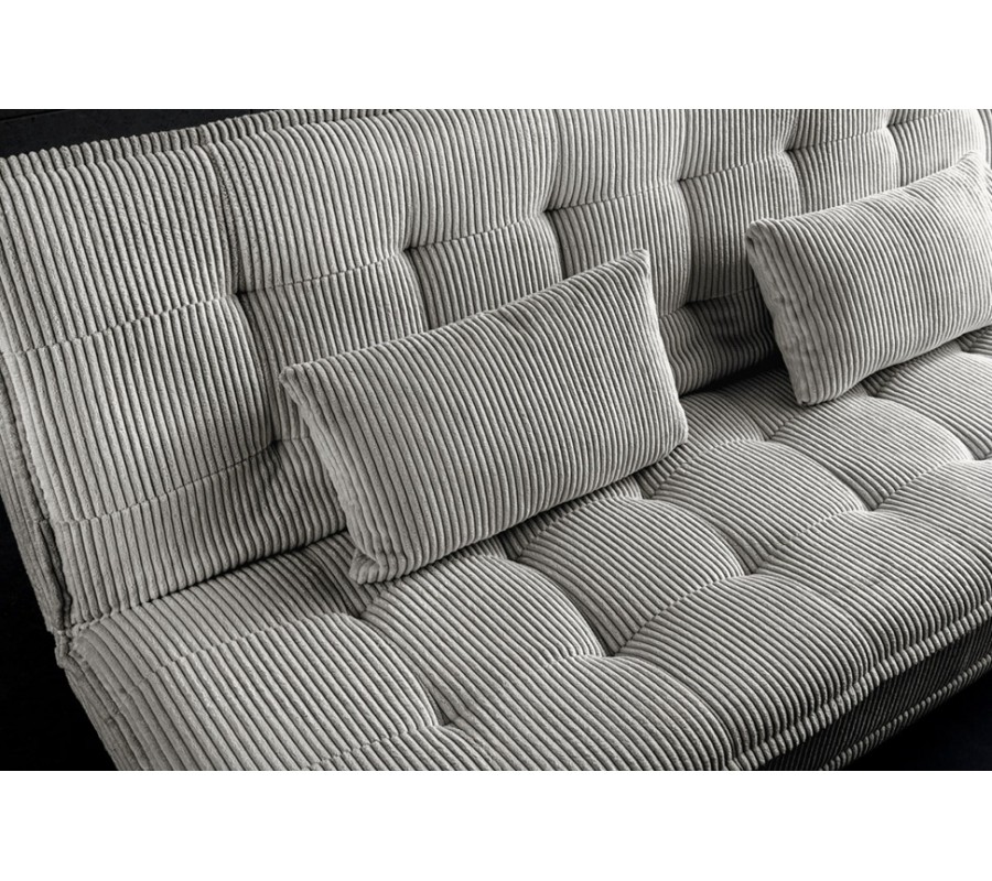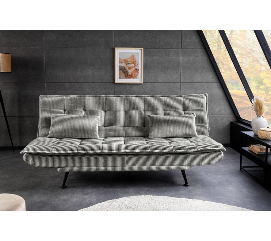 Moderná rozkladacia trojmiestna sedačka Manchester v svetlej sivej farbe s menčestrovým poťahom s dvomi vankúšmi 190 cm