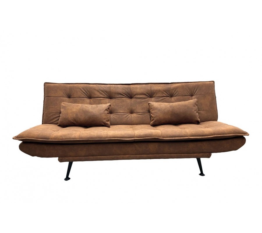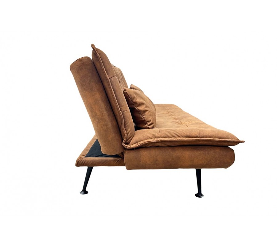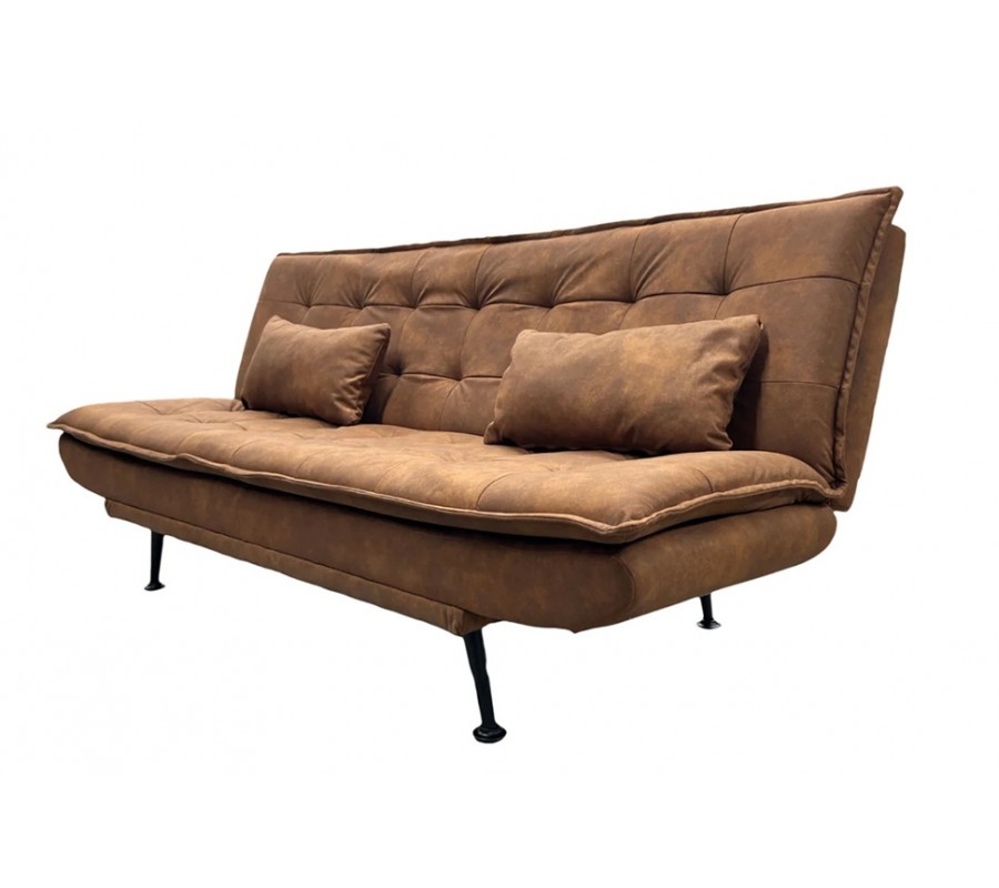 Sedačka je čalúnená poťahom z mikrovlákna, ktoré je jemné na dotyk, odolné a praktické na každodenné používanie. Povrch poťahu jemne pripomína semiš, čím dodáva sedačke elegantný a hrejivý vzhľad. Hnedý odtieň podčiarkuje jej prirodzený charakter a vizuálnu hĺbku. Operadlo je prešívané do pravidelného štvorcového vzoru, ktorý dodáva dizajnu štruktúru a moderný rytmus. Prešívaný lem po obvode sedacej aj operadlovej časti zvýrazňuje precízne spracovanie a dotvára celkový vzhľad. Súčasťou sú dva obdĺžnikové vankúše, ktoré zvyšujú komfort a umožňujú pohodlné opretie.