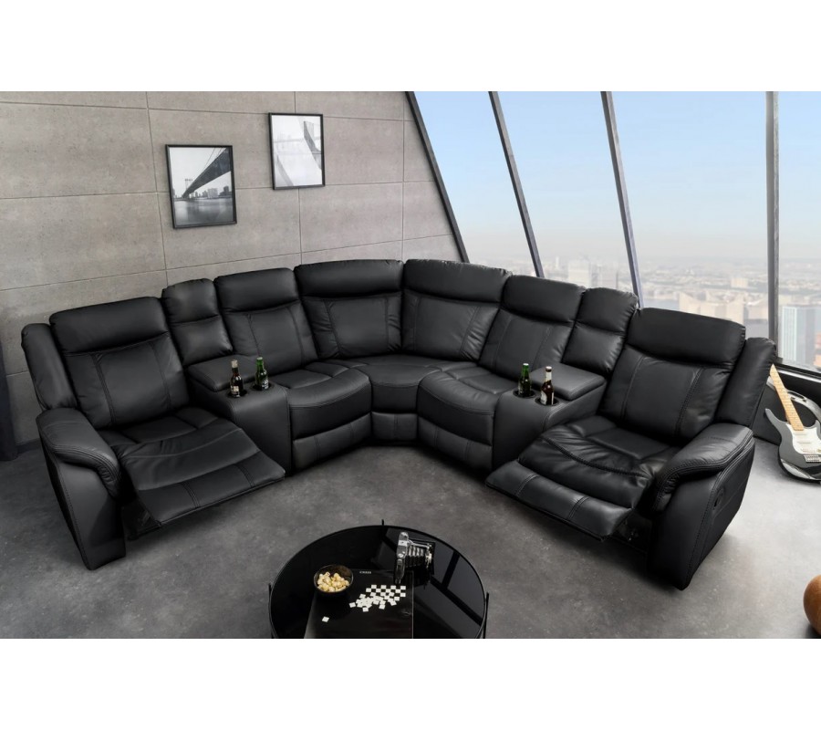 Luxusná rohová päťmiestna kinosedačka Phoenix v čiernom eko-koženom prevedení je navrhnutá pre maximálny komfort a dokonalý relax v domácom prostredí. Zostava sa skladá zo štyroch samostatných kresiel a jedného rohového sedadla, čím vytvára priestranné rohové sedenie ideálne do väčších obývačiek alebo miestností určených na domáce kino. Bočné kreslá sú vybavené polohovateľnými opierkami na nohy, ktoré je možné jednoducho vysunúť pomocou bočných pák, vďaka čomu si každý užívateľ môže nastaviť pohodlnú relaxačnú polohu podľa vlastných potrieb.
