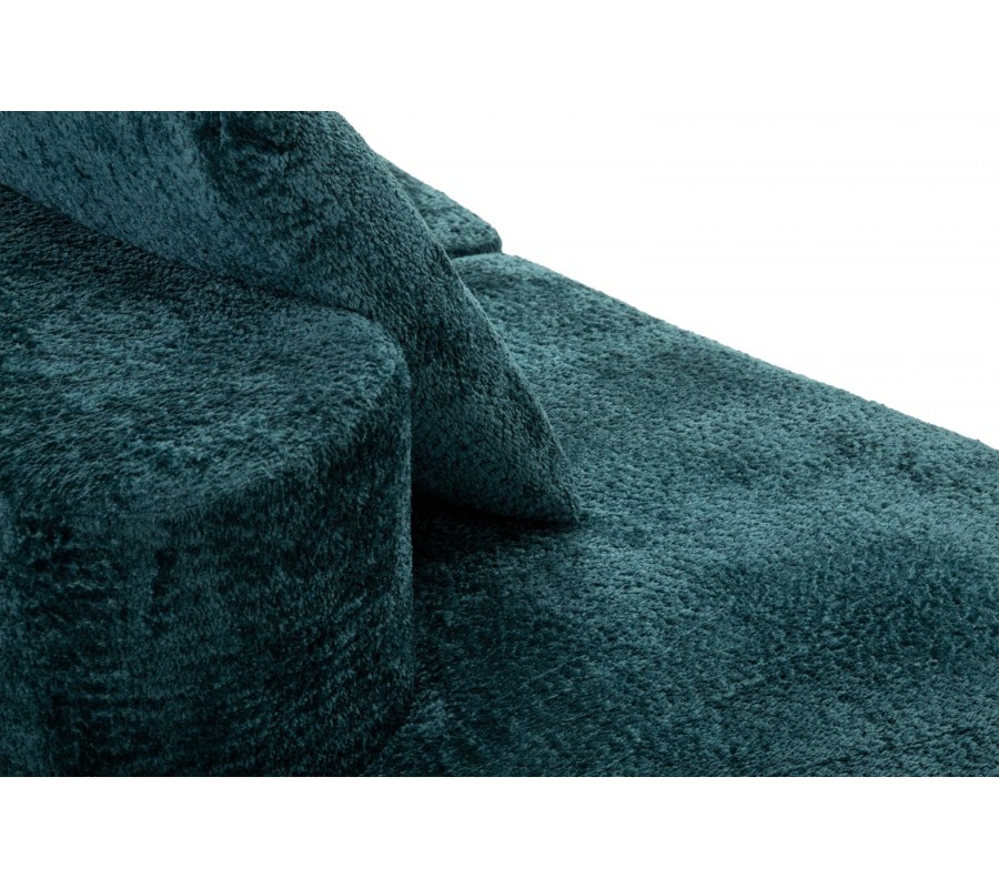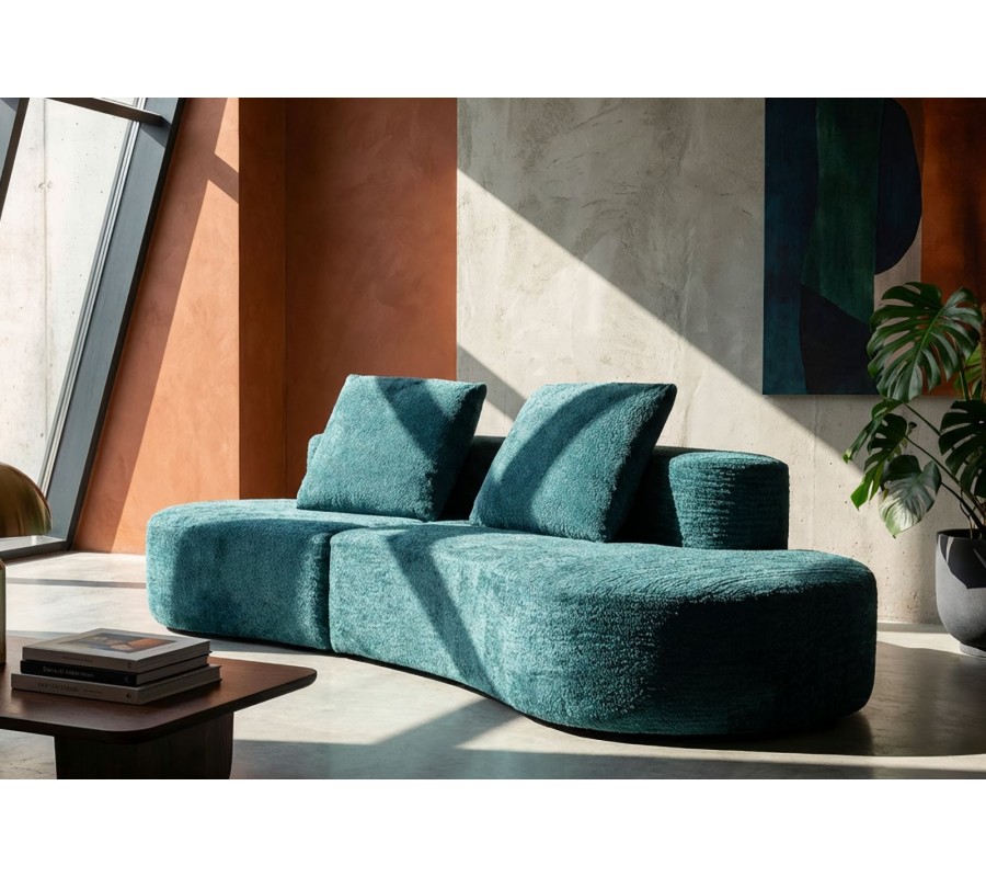 Štvormiestna sedačka Lilos je výrazným dizajnovým prvkom s jemnou inšpiráciou art deco estetikou. Jej organický, oválny tvar pôsobí mäkko a sochársky, vďaka čomu sa prirodzene stáva dominantou interiéru. Výrazná modrá farba v kombinácii s plyšovým poťahom dodáva sedačke hĺbku, vizuálnu mäkkosť a elegantný charakter.