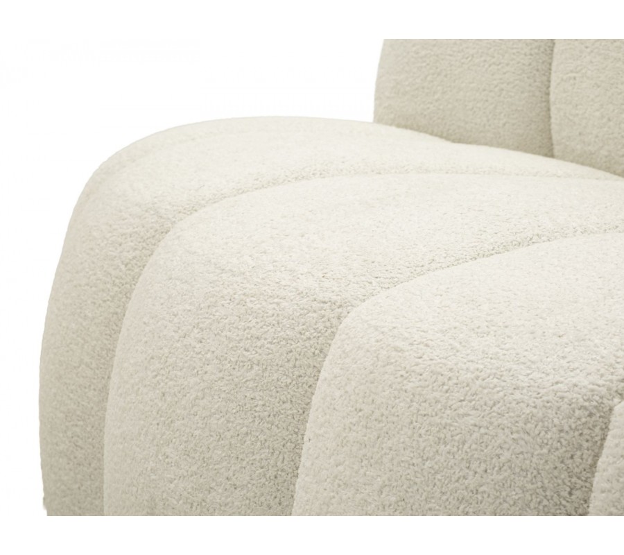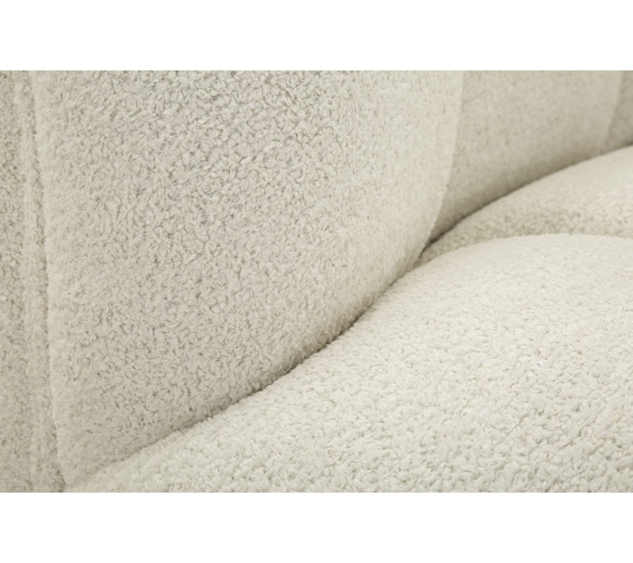 Sedačka má pevnú drevenú konštrukciu, ktorú pokrýva penová výplň pre maximálny komfort. Poťah je vyrobený z mikrovlákna s mäkkým plyšovým finišom s vyšším vlasom. Je mimoriadne príjemný na dotyk a zároveň výborne odolá vplyvom každodenného používania. Prevedenie v bielej farbe je nadčasové a univerzálne.