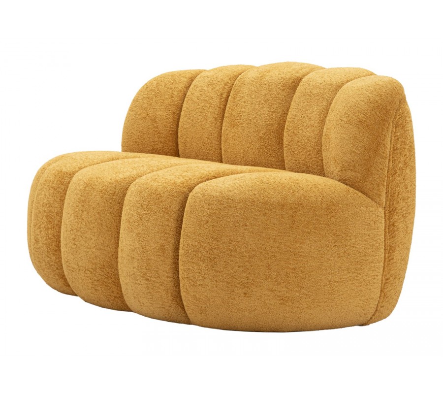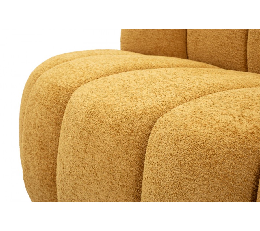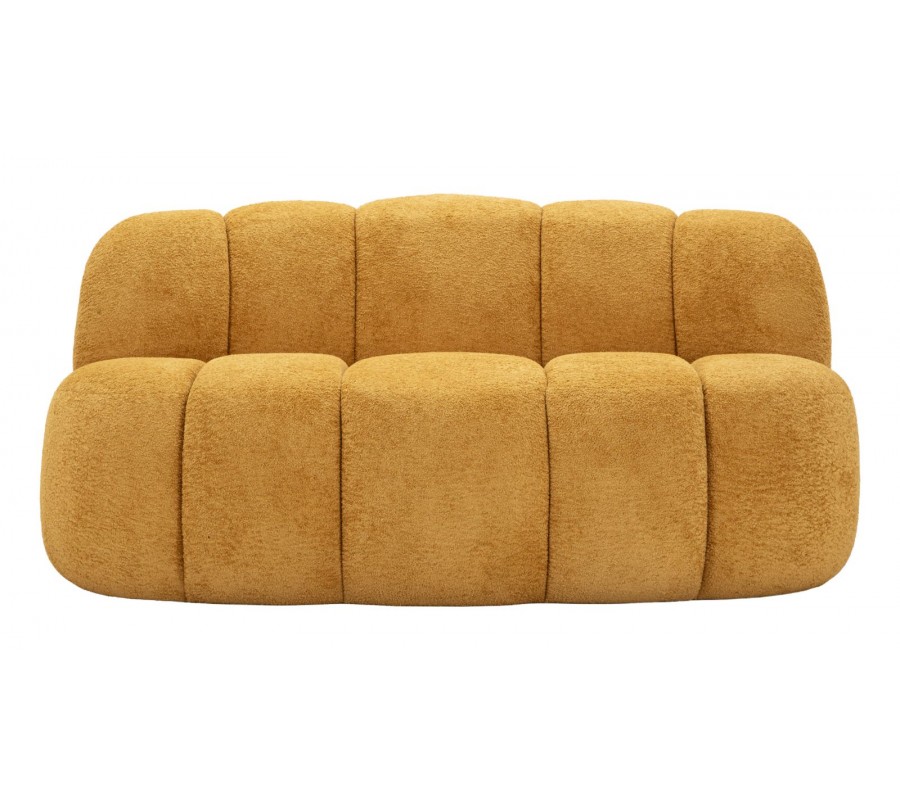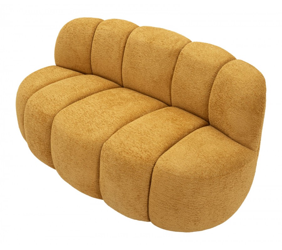 Dizajnová moderná dvojmiestna sedačka Berry so žltým plyšovým poťahom a zaobleným cloud tvarom rozdeleným na päť častí 145 cm