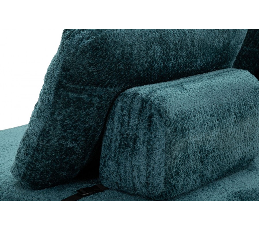 Penová výplň je pevná a poskytuje výbornú stabilitu nábytku. Povrch pokrýva poťah z mikrovlákna, ktoré mu zaručuje odolnosť voči vplyvom každodenného používania. Plyšový finiš so stredne dlhým vlasom je príjemný na dotyk a pôsobí teplým dojmom. Krásna tyrkysová modrá farba prinesie do priestoru farebný akcent.