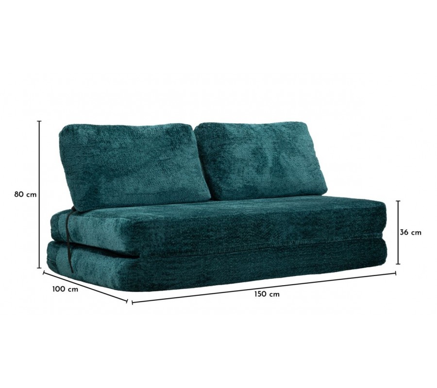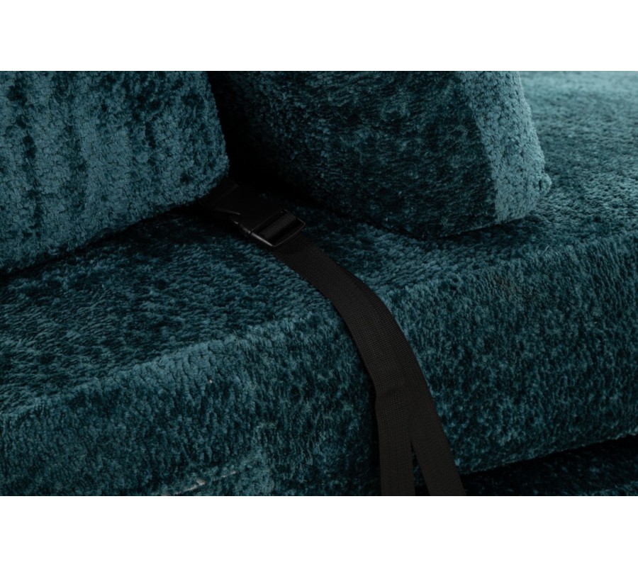 Sedačka Raffai je štýlovým a flexibilným riešením do moderných obývačiek či detských a hosťovských izieb, kde prinesie dotyk škandinávskej harmónie. Tmavá tyrkysová farba vytvorí v priestore elegantný akcent a plyšový poťah zaručí maximálne pohodlie a mäkkosť.