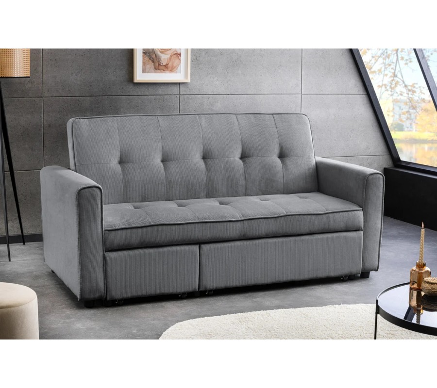 Štýlová moderná rozkladacia dvojmiestna sivá sedačka Lefan s menčestrovým poťahom 180 cm