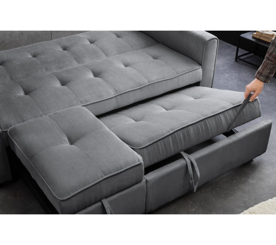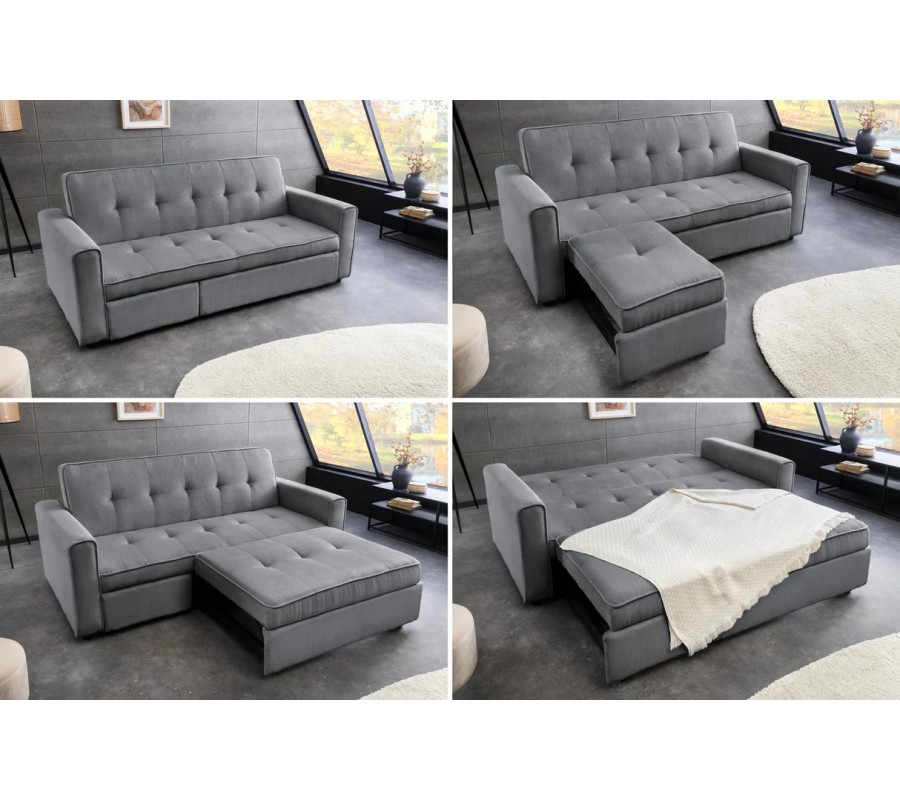 Jedinečnou vlastnosťou sedačky je asymetrický rozkladací mechanizmus, ktorý umožňuje samostatné vysunutie menšej ľavej časti na vytvorenie komfortnej ležadlovej polohy, alebo širšej pravej časti pre väčší komfort pri sedení či ležaní. Vysunutím oboch častí naraz vznikne plnohodnotná spacia plocha, vďaka čomu sedačka poskytuje vysokú mieru variability a funkčnosti. Práve táto flexibilita z nej robí ideálnu voľbu do menších bytov, obývačiek alebo multifunkčných priestorov.