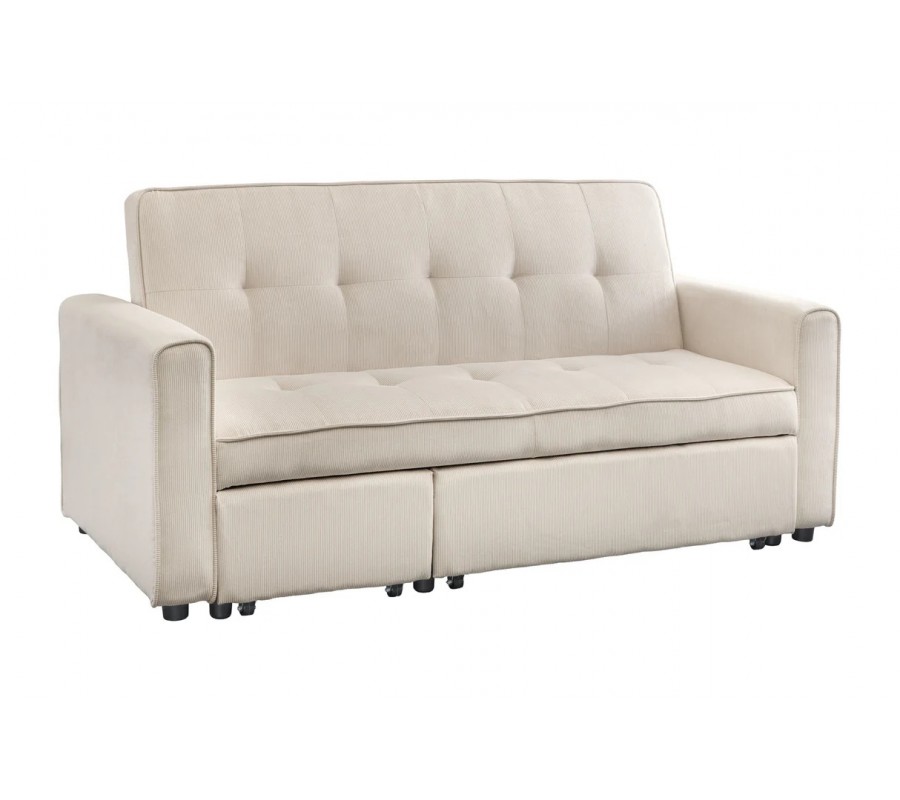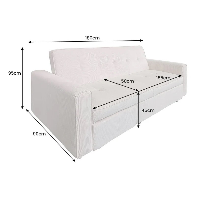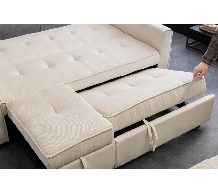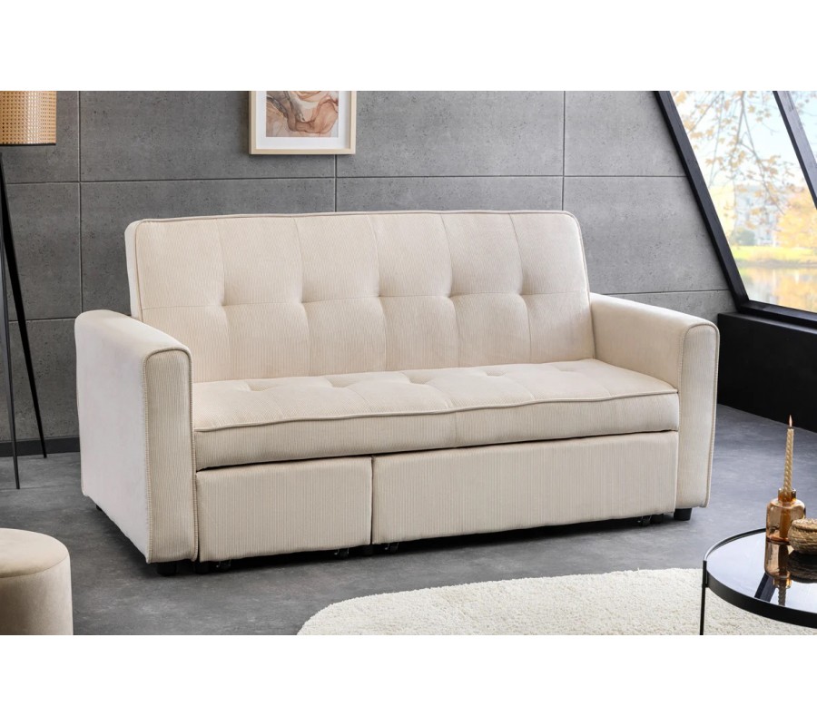 Štýlová moderná rozkladacia dvojmiestna sedačka Lefan s menčestrovým poťahom v béžovej farbe 180 cm