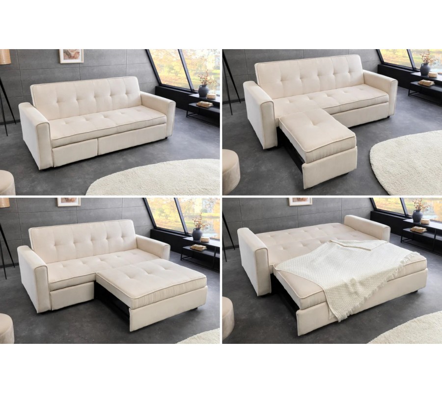 Moderná béžová rozkladacia dvojmiestna sedačka Lefan je elegantným a mimoriadne praktickým riešením pre súčasné bývanie. Vďaka premyslenému rozkladaciemu systému ponúka vysokú mieru flexibility a jednoducho sa prispôsobí aktuálnym potrebám – od každodenného sedenia až po pohodlné ležanie či príležitostné prespanie.