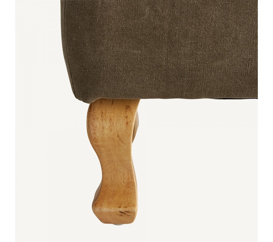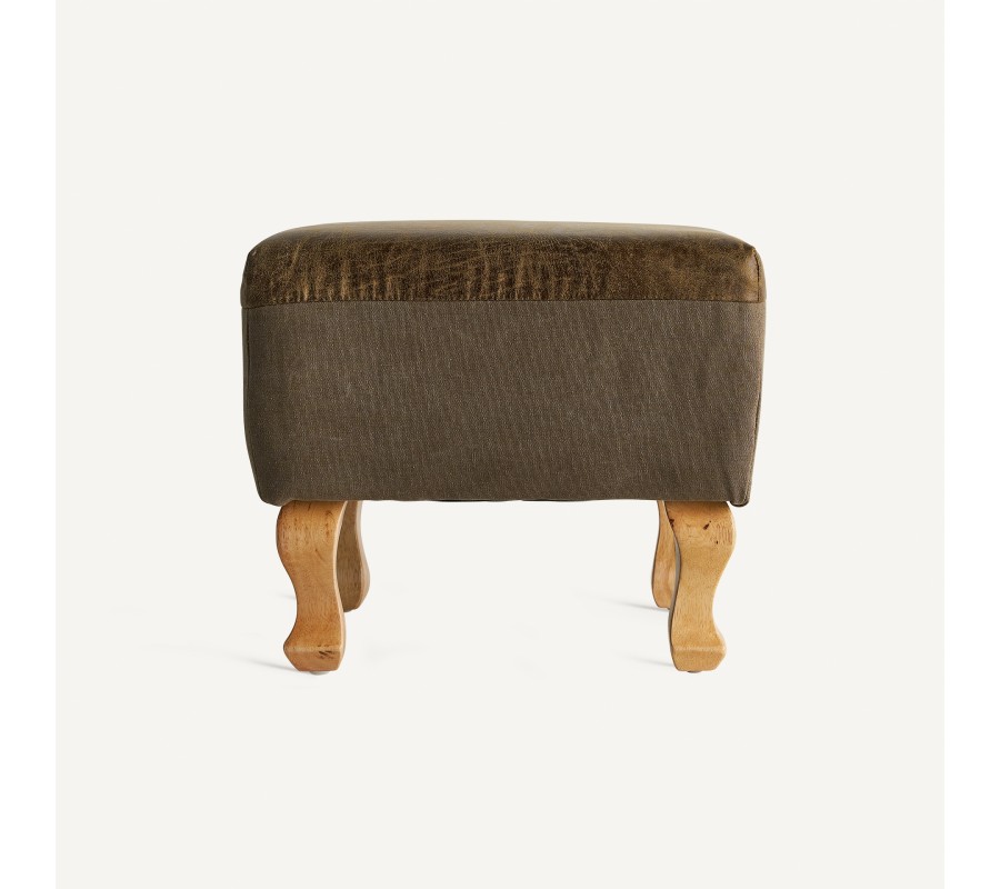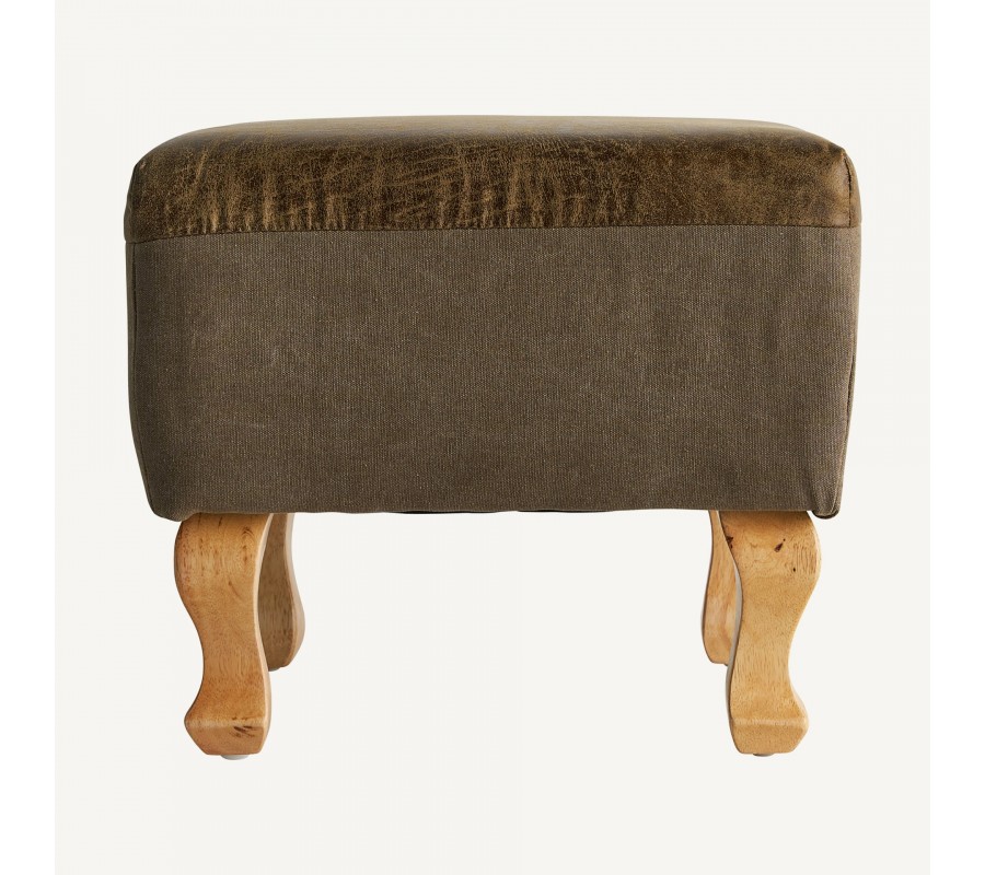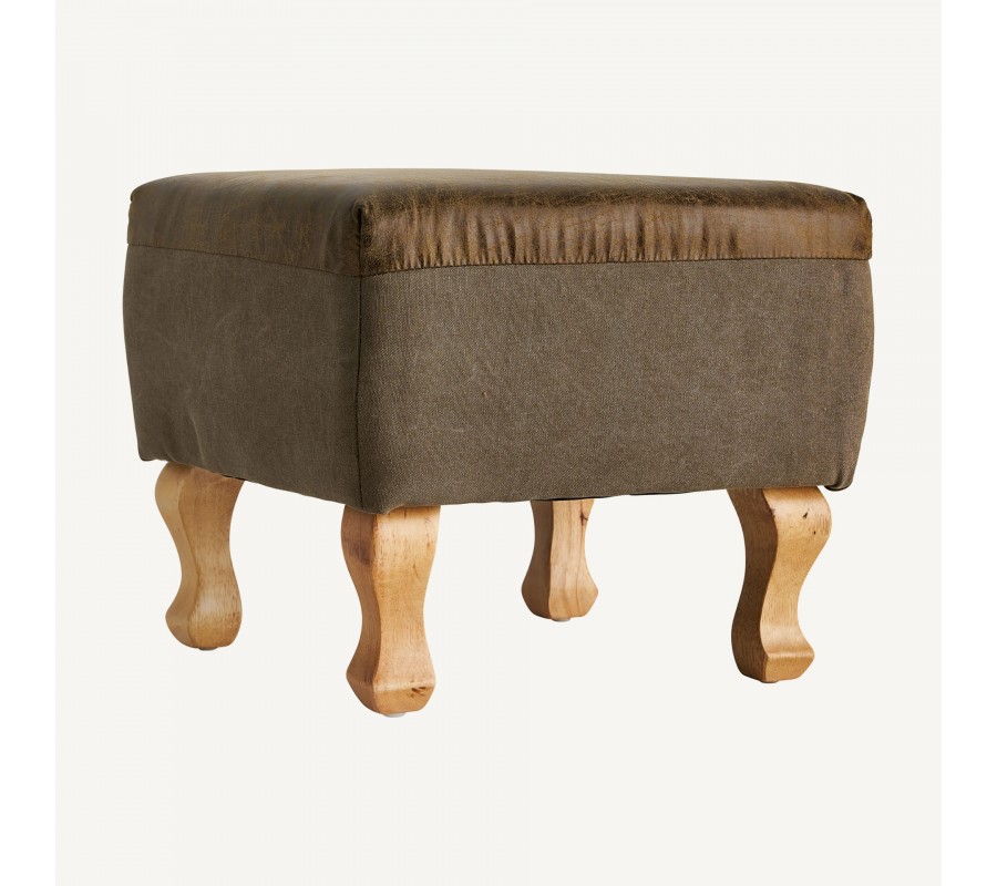 Štýlová taburetka LUYK je vyrobená z brezového dreva a je potiahnutá gaštanovo hnedým poťahom.