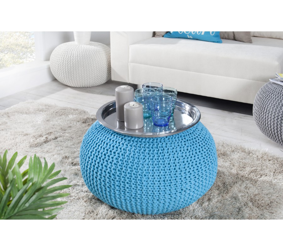 Okrúhla taburetka Stool v žiarivej modrej farbe je štýlovým doplnkom s moderným nádychom, ktorý vnesie do interiéru sviežosť a textúru. Jej podstava je vytvorená z pevného materiálu obaleného hrubým úpletom, ktorý pôsobí mäkko a zároveň robustne.