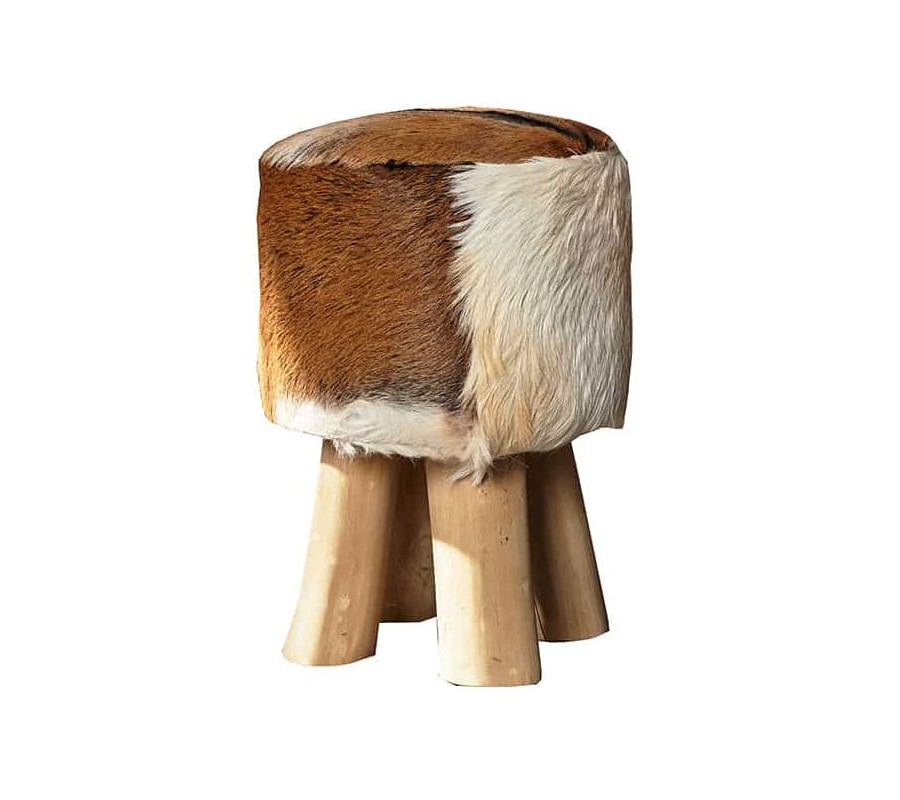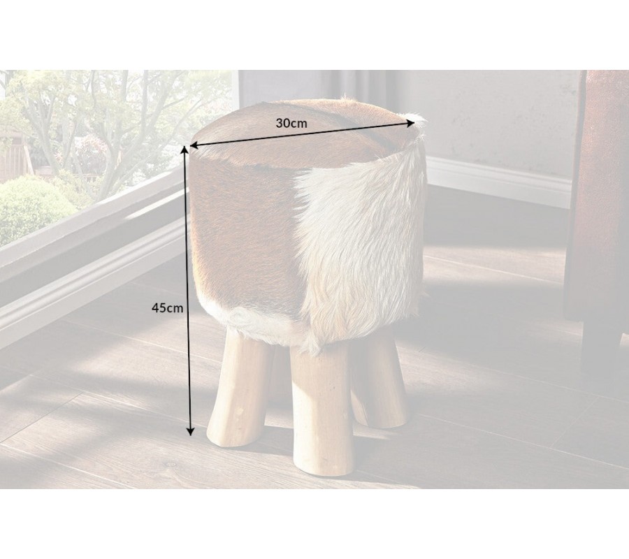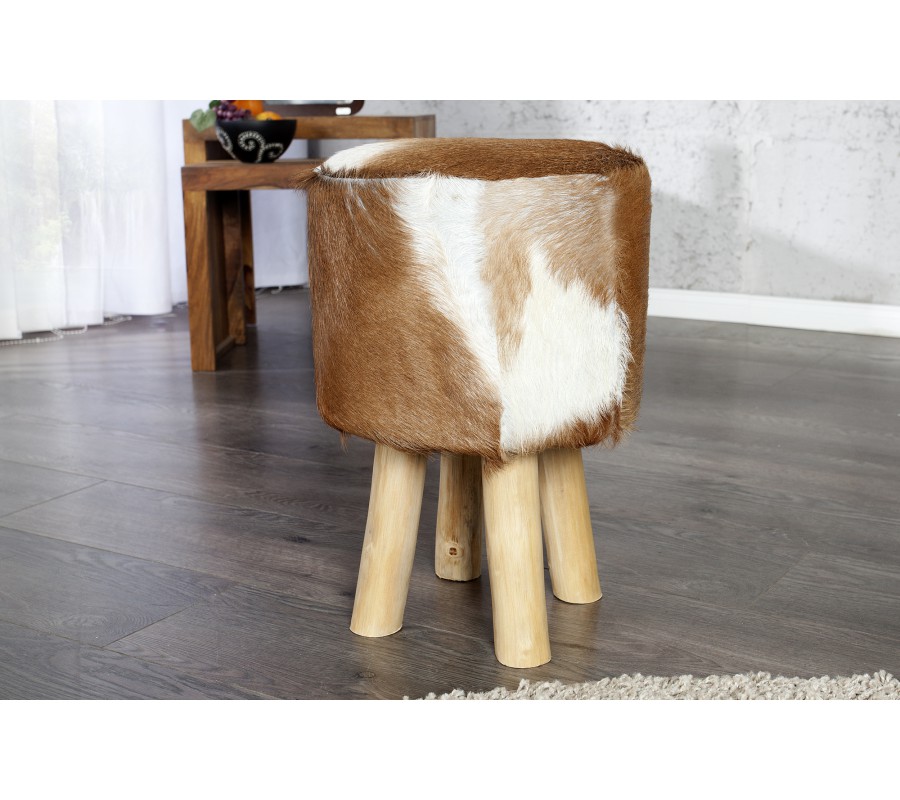 Luxusná dizajnová taburetka Hide z hnedo-bielej kozej kože