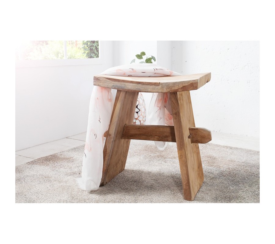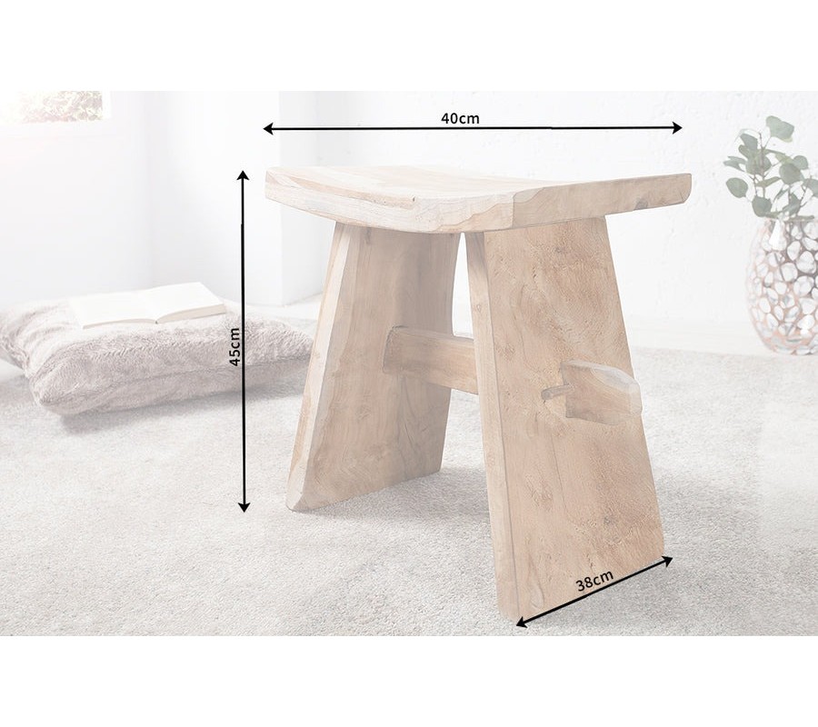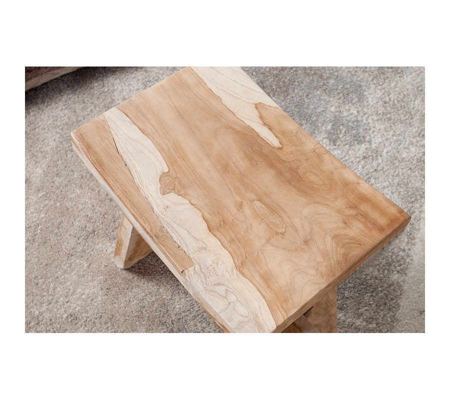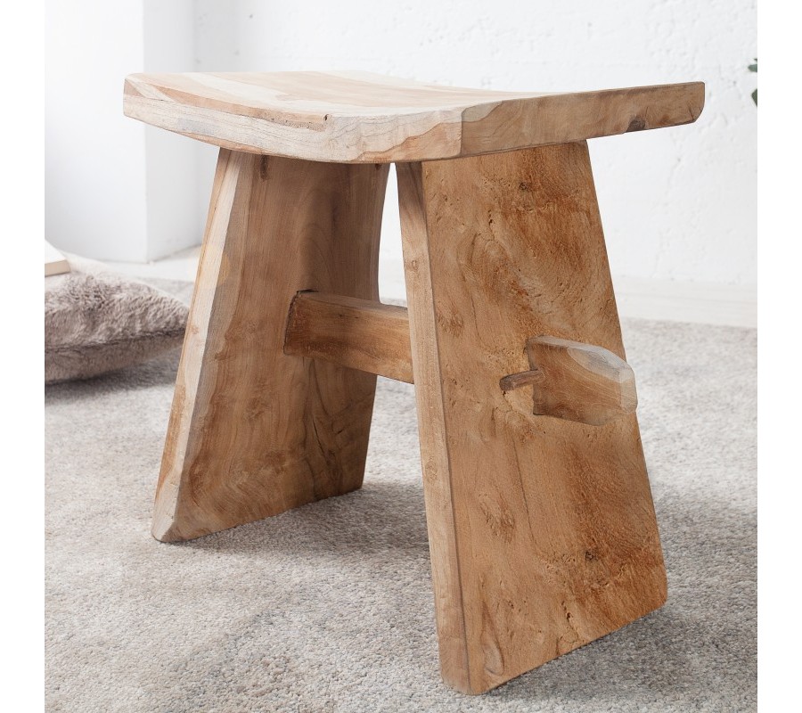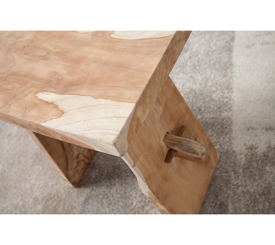 Taburetka Zen je jedinečný doplnok vo vidieckom štýle, ktorý v sebe spája autentickosť prírodného materiálu a funkčný dizajn. Vyrobená je z masívneho teakového dreva, známeho svojou pevnosťou, odolnosťou a krásnou štruktúrou. Prírodne hnedý odtieň dreva necháva vyniknúť originálne kresby, nerovnosti a farebné prechody, vďaka čomu je každý kus originálom.