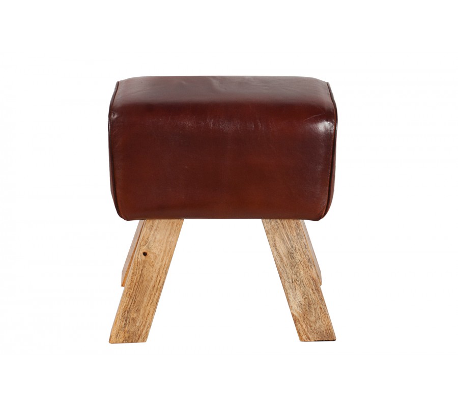 Taburetka Bock vnesie do interiéru autentickú vidiecku atmosféru vďaka masívnym dreveným prvkom a poctivému koženému spracovaniu. Jej obdĺžnikový tvar a vysoký sed pripomína tradičné gymnastické náčinie či odkladacie kozy na sedlá pre kone, čo jej dodáva charakteristický rustikálny nádych s mierne športovým akcentom.