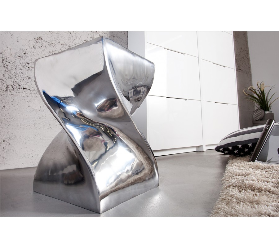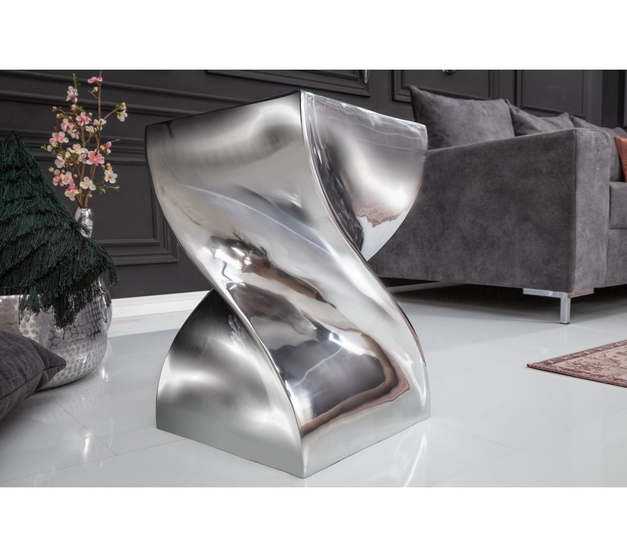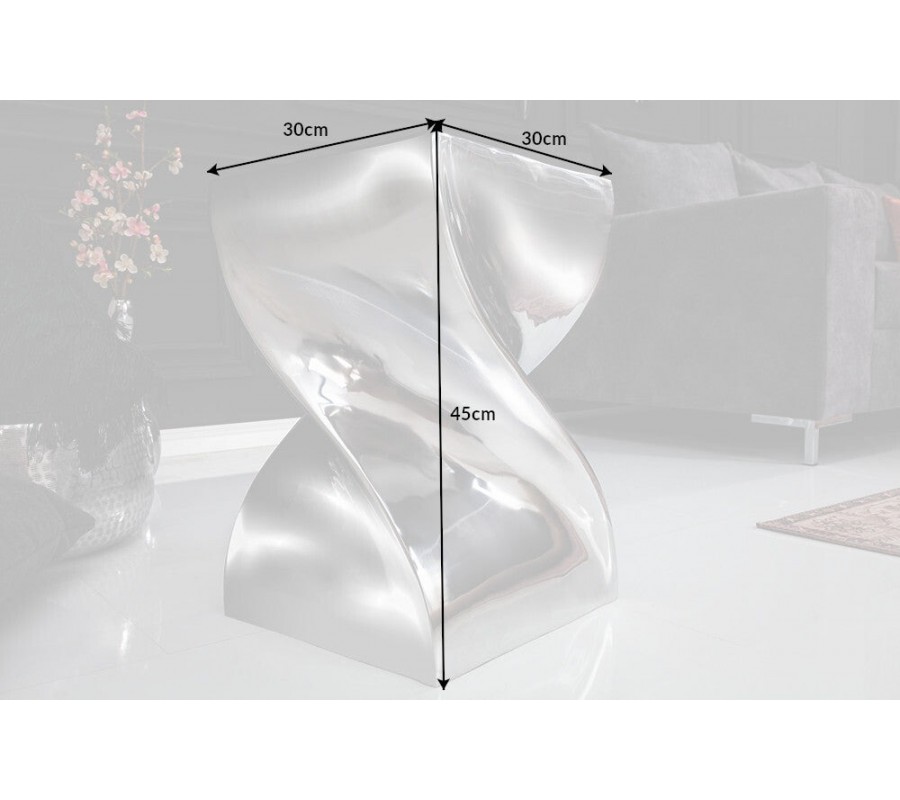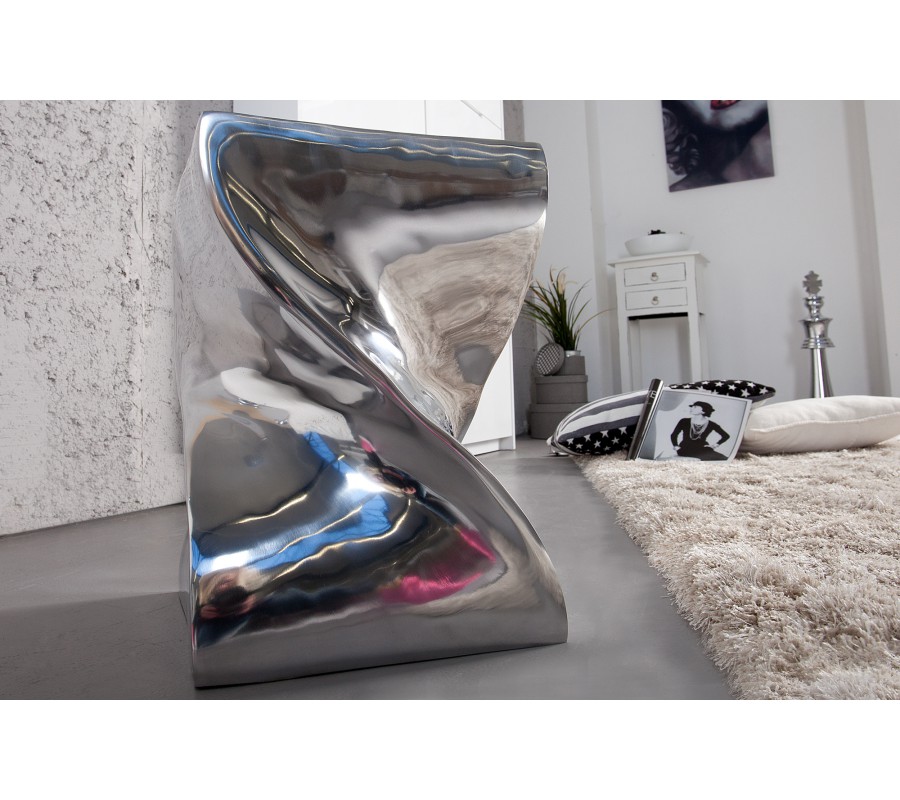 Extravagantná moderná stolička Twist zaujme na prvý pohľad svojim vzhľadom a striebornou farbou. Môže pôsobiť aj ako dekoračná socha v interiéri. Stolička Twins je vyrobená z kvalitného hliníka v striebornej farbe. Rozmery: 30 cm x 45 cm x 30 cm (ŠxVxH).