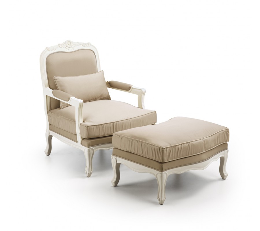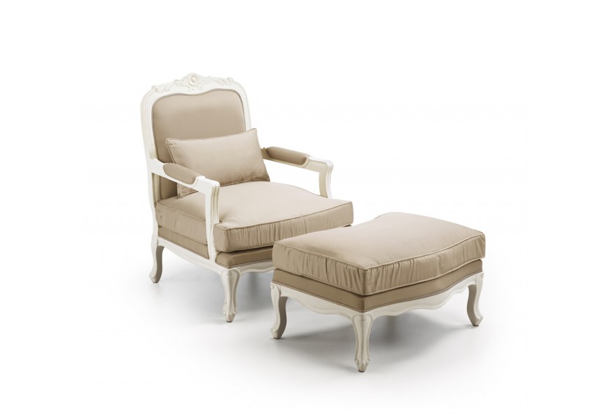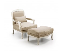 Luxusná taburetka Victory biela z masívneho dreva CAOBA (mahagon) v štýle Vintage. V tejto M-Vintage kolekcií je to nábytok, ktorý síce nemá zostarnuté prvky čo sa týka povrchu, ale má typické prvky z tohto štýlu.