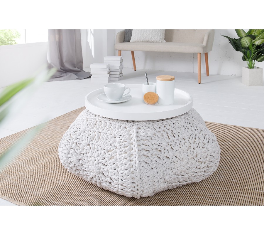 Dizajnový biely Cosy Pouf je dokonalým doplnkom do moderne, dizajnovo či rustikálne zariadených domácností. Je jedinečným kúskom práve vďaka svojej účelovosti a praktickosti. Je možné ho použiť ako konferenčný stolík aplikovaním tácky alebo ako pohodlnú taburetku. Svojou prepletanou štruktúrou dodáva do priestoru domácku a útulnú atmosféru. Ak hľadáte zaujímavý kúsok do vášho interiéru, dizajnový biely Cosy Pouf je pre vás súci. Svojou elegantnou bielou farbou, textúrou a tvarom nenechá žiadnu návštevu bez povšimnutia.