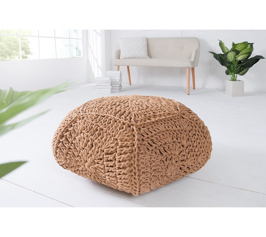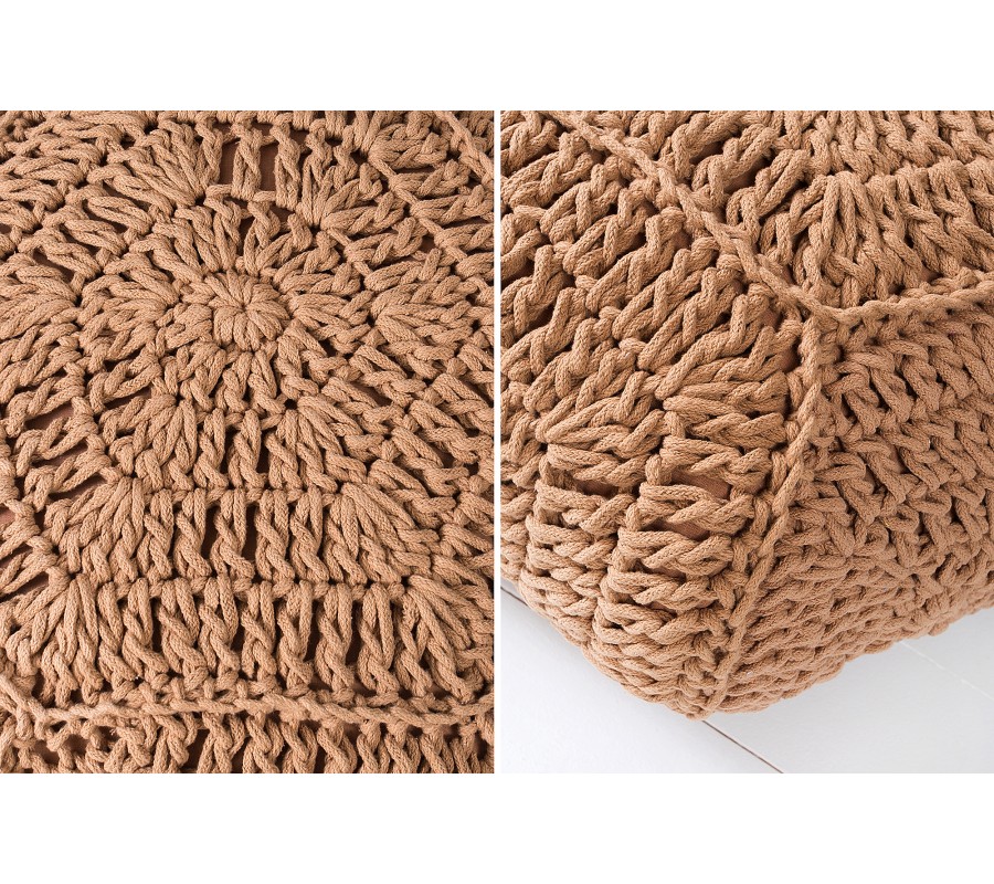 Dizajnová štýlová taburetka Cosy je všestranná, či už ako stolička, taburetka alebo podnožka. Každý jeden kus je ručne háčkovaný a unikátny. Taburetka je vyplnená malými polystyrénovými guličkami. Materiál: 100% bavlna
