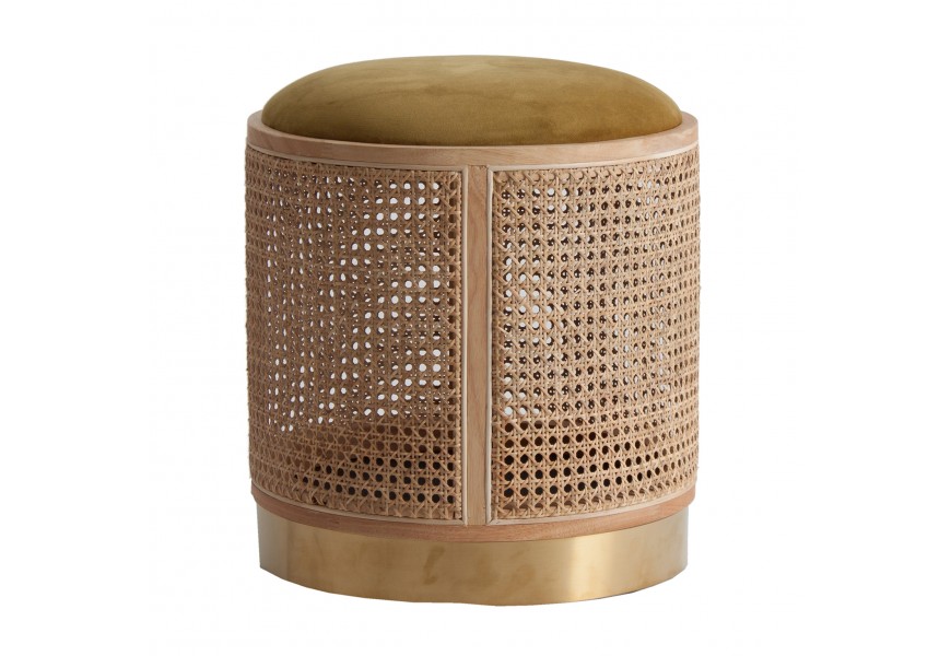 Luxusný taburet Zidow je vyrobený z tropického dreva v prírodnom bledom odtieni. Kruhová podstava je doplnená typickým výpletom, ktorý je veľmi obľúbený práve vďaka svojej ľahkosti sprevádzanej odolnosťou voči záťaži či potrebnej pružnosti. Sedacia časť taburetu je čalúnená v lesklom zamatovom poťahu s typickým dlhým vlasom v neutrálnom hnedom až zlatistom odtieni. Štýlový kruhový taburet Zidow skvele vynikne v kombinácii s luxusnými sedačkami a kreslami v obľúbenom Art-deco štýle či umiestnený ako solitér s praktickým príručným stolíkom a výrazným svietidlom. Odporúčame ho kombinovať s ďalšími prvkami z našej rovnomennej kolekcie dizajnového nábytku Zidow v jedinečnom nádychu Art-deco štýlu.