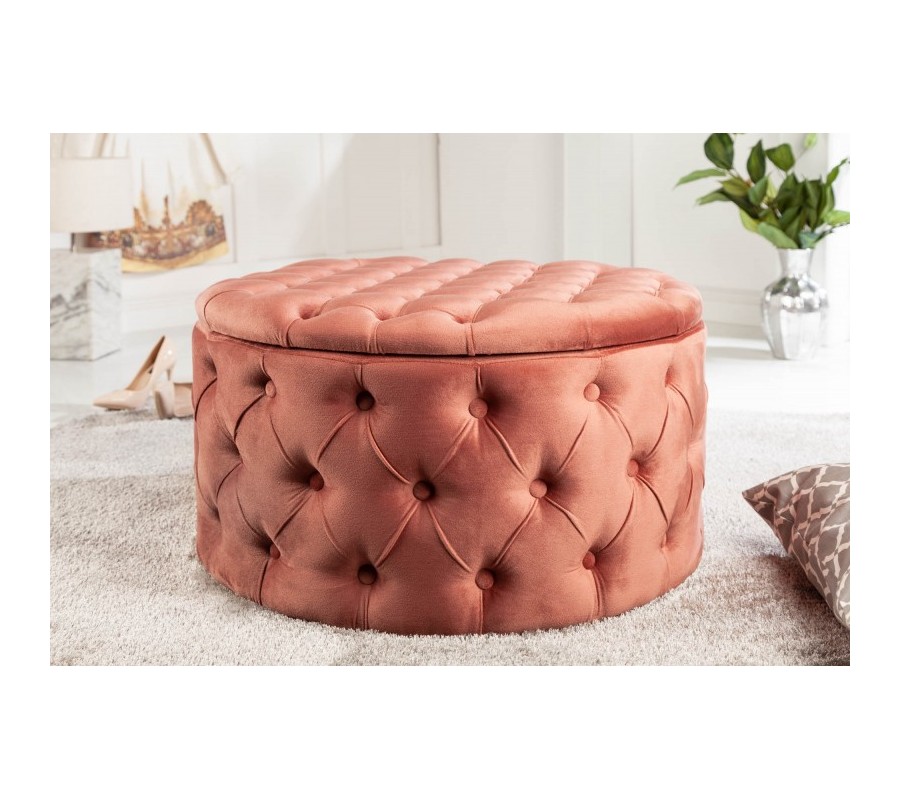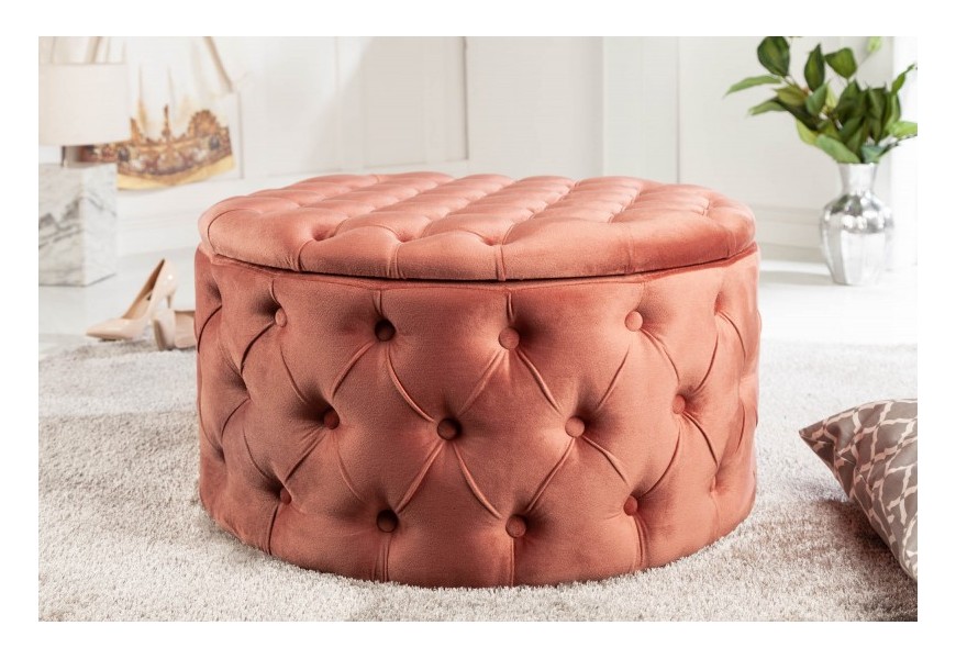 Chesterfield dizajnová taburetka Modern Barock v ružovej farbe s úložným priestorom 75cm