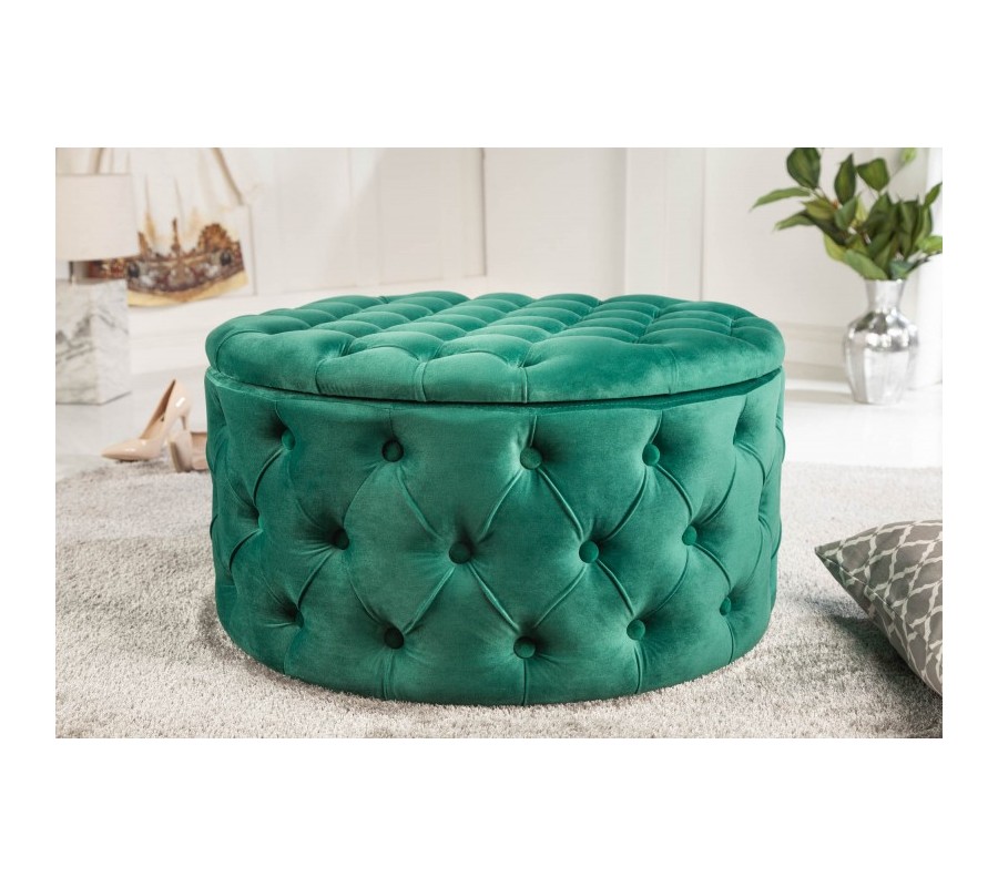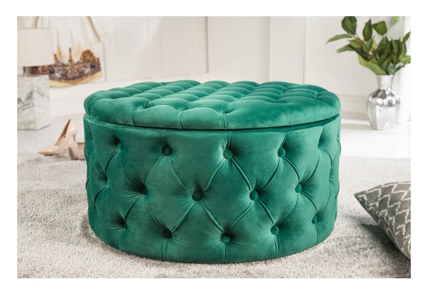 Štýlová chesterfield taburetka Modern Barock v zelenej farbe s úložným priestorom 75cm
