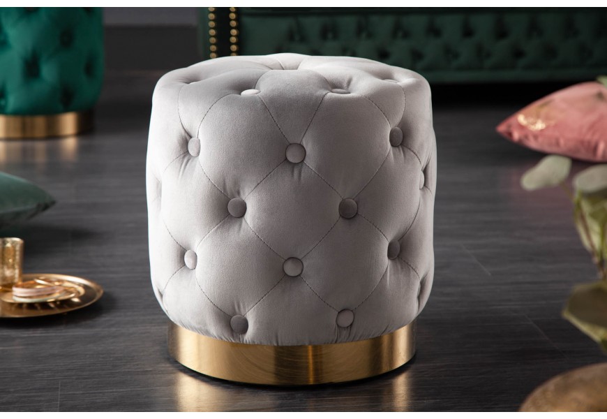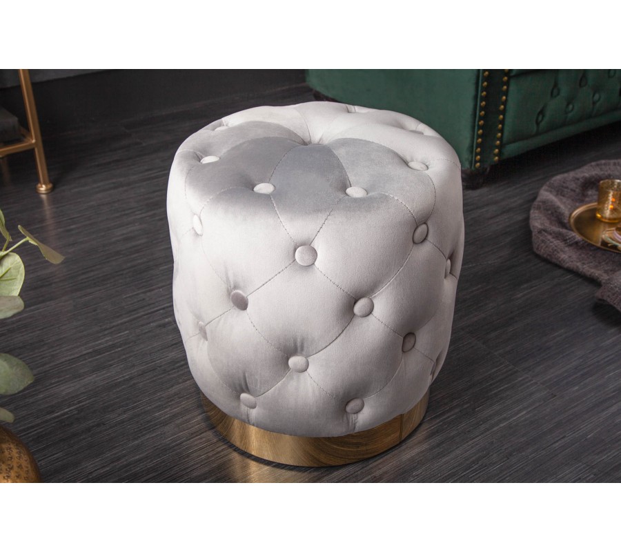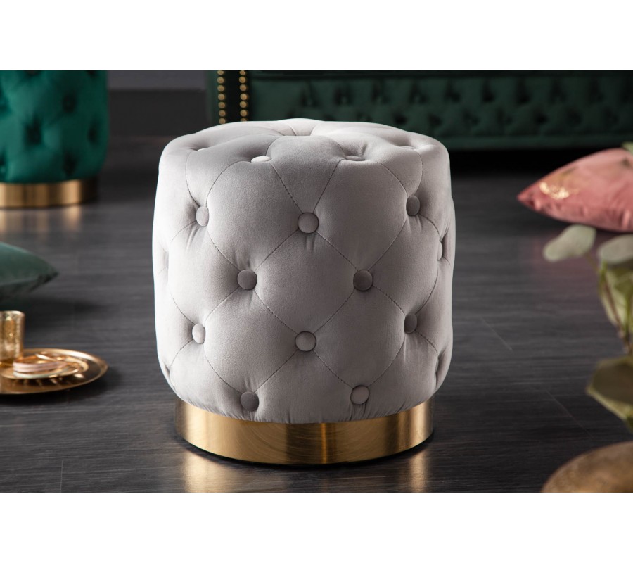 Baroková luxusná sivá taburetka Modern Barock so zamatovým poťahom 38cm