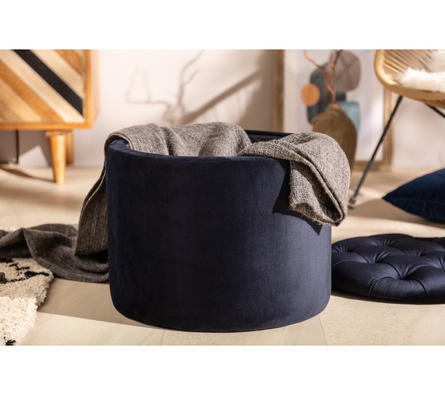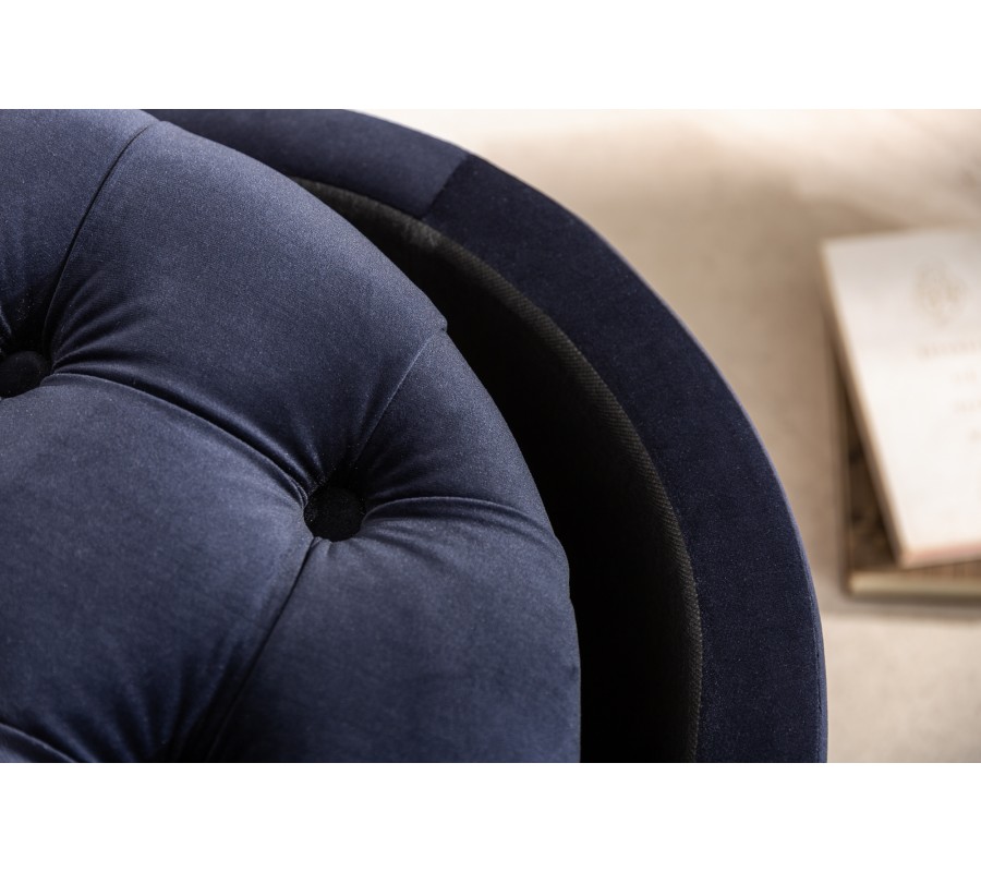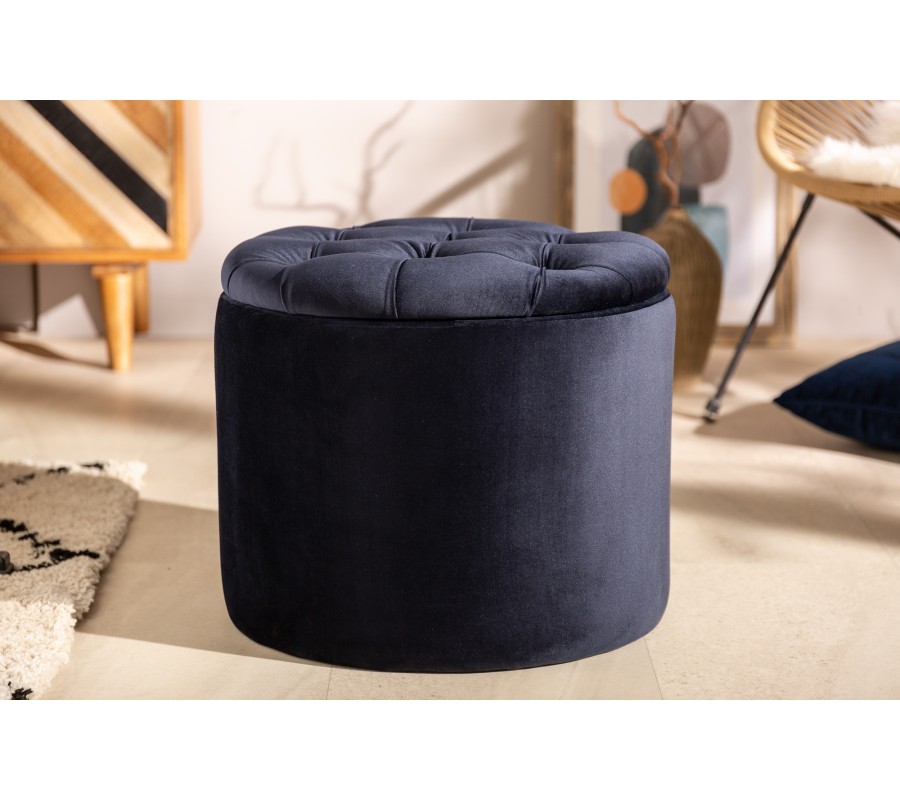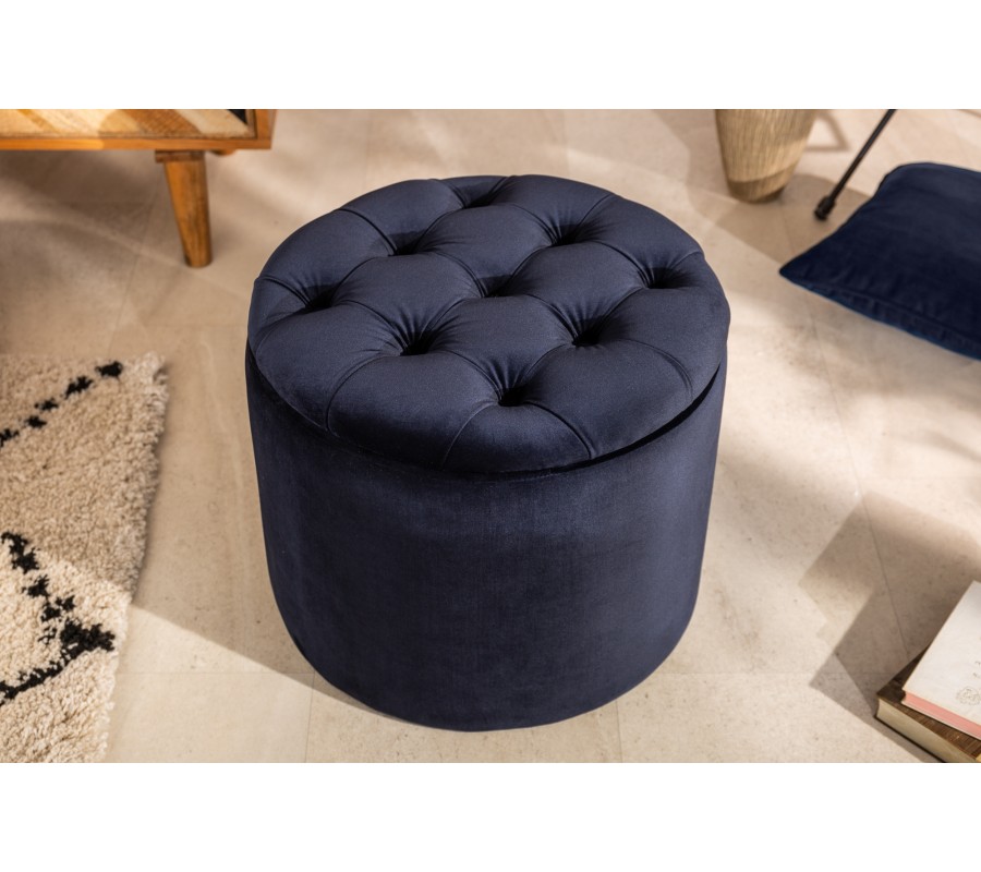 Dizajnová a nadčasová taburetka z kolekcie zámockého nábytku Modern Barock je vkusným doplnkom do nejednej modernej domácnosti. Obohaťte svoj interiér o vkusného pomocníka, ktorý Vašim nohám poskytne priestor pre odpočinok, či usadí nečakaného hosťa a taktiež poteší bonusovým úložným priestorom, ktorý ukrýva pod odnímateľnou sedacou časťou. Dômyselná kombinácia povrchového čalúnenia v štýle chesterfield a nenúteného kruhového tela, ktoré je potiahnuté nádherným zamatom tmavomodrej farby pôsobí naozaj nadčasovo a veľmi vkusne. Taburet Modern Barock dokonale zapadne do moderných obývačiek či kancelárií, v rámci ktorých ho odporúčame kombinovať so zlatými dekoráciami a doplnkami v kontrastných teplých odtieňoch.