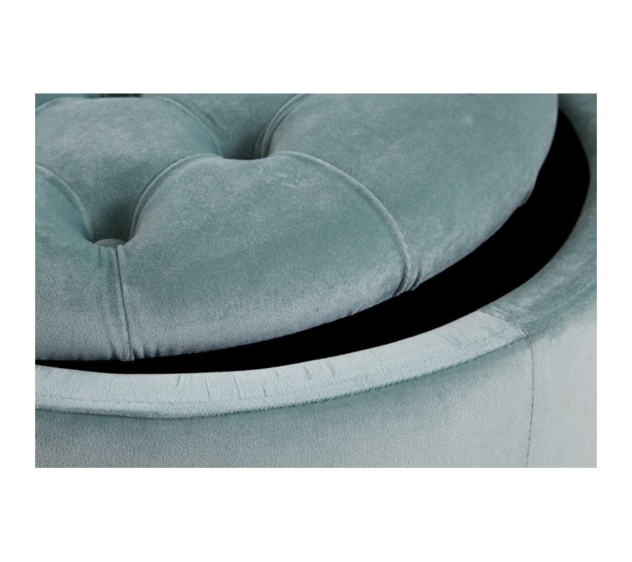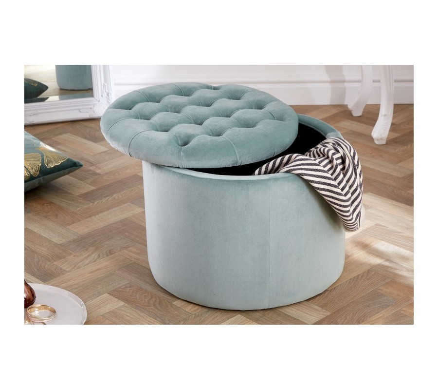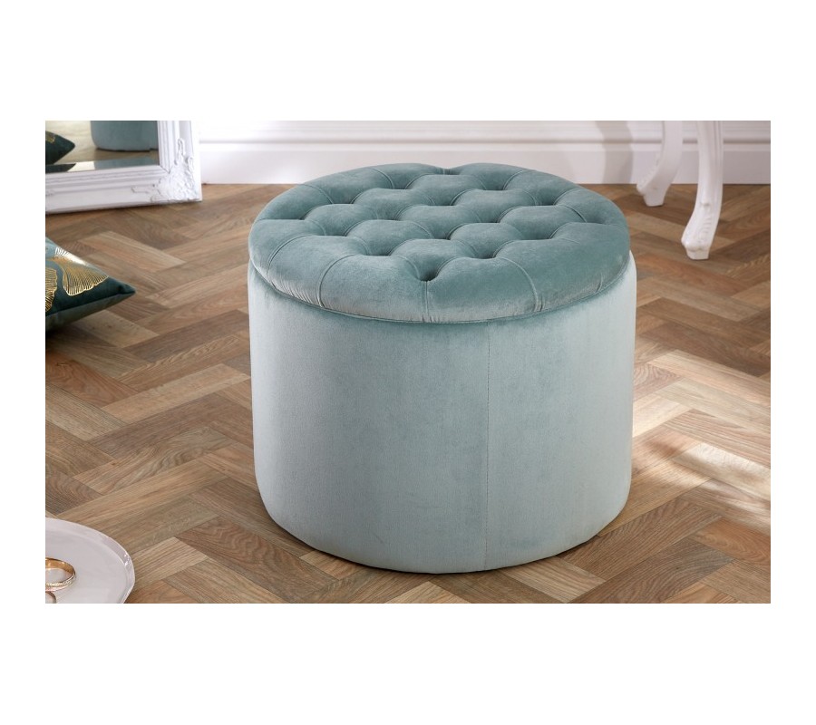 Dizajnová taburetka Modern Barock je zaujímavým kúskom do každého moderného interiéru, ktorý potrebuje oživiť. Zaujímavý dizajn pripomínajúci barokový štýl sa vo vašej obývačke bude zaručene skvelo vynímať. Vyrobená je z príjemného zamatového poťahu štýlovej mentolovej farby, ktorá sa dá skvelo kombinovať napríklad so zlatou, striebornou či bielou. Štýlové a nadčasové chesterfield prešívanie robí taburetku Modern Barock originálnou a jedinečnou. Kruhový tvar je praktický a dizajnový zároveň. Vo vnútri taburetky je úložný priestor, ktorý možno využiť na rôzne predmety, napríklad deky či časopisy. Taburetku je možno využiť nielen na sedenie, ale aj ako príručný či konferenčný stolík. Odporúčame taktiež kombinovať s ďalšími kúskami z našej kolekcie Modern Barock.
