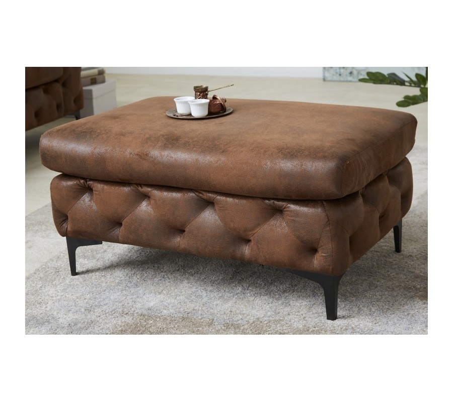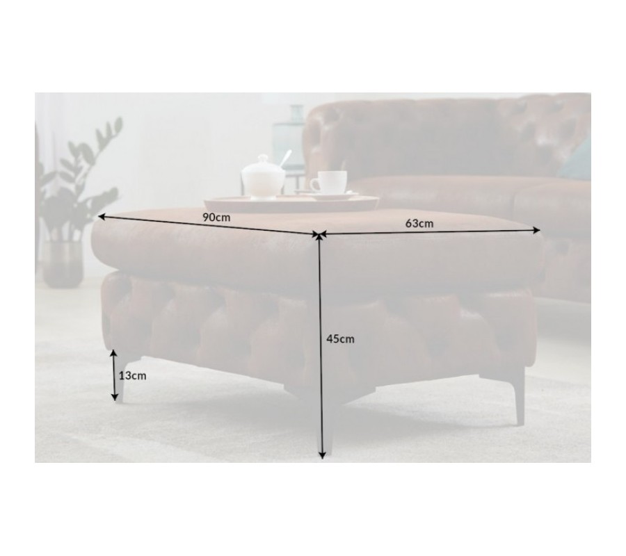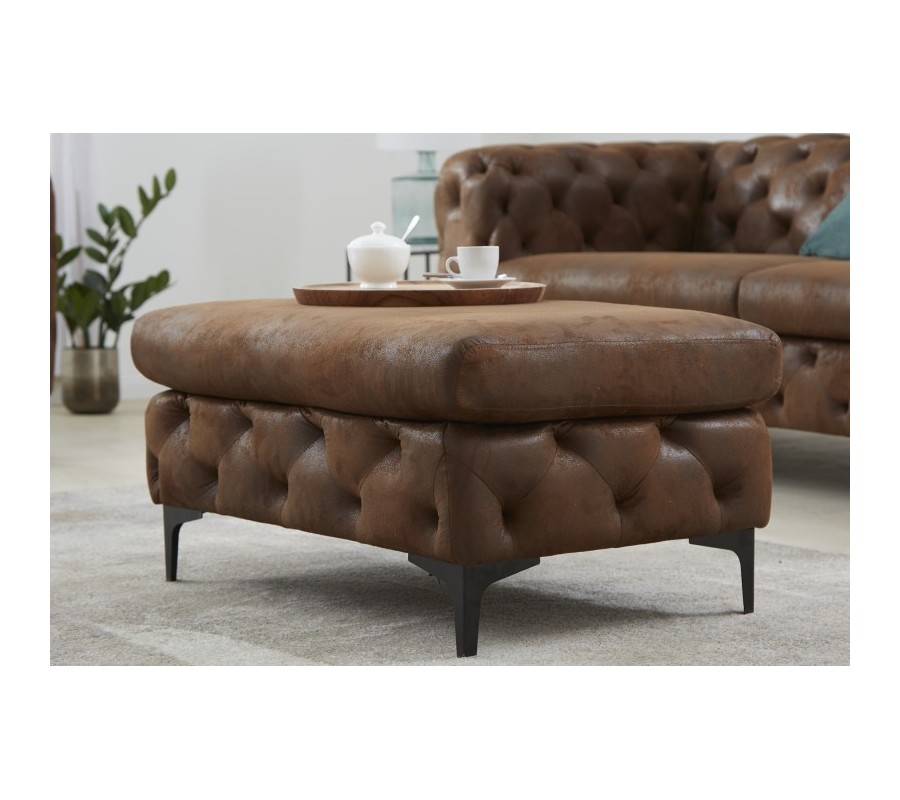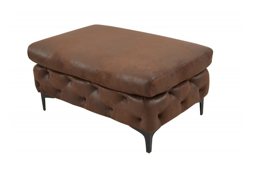 Štýlová taburetka Modern Barock je dokonalým spojením moderného štýlu s prevzatými prvkami baroku. Hnedý poťah je vyrobený z kvalitného mikrovlákna, ktoré svojimi odleskami pripomína vzhľad kože. Nadčasové prešívanie v Chesterfield štýle po stranách taburetky je doplnené komfortným hladkým vankúšom na sedacej časti taburetu. Hnedá čalúnená časť taburetu je doplnená decentnými nožičkami, ktoré sa stávajú odľahčujúcim moderným prvkom taburetu Modern Barock. Tento štýlový kúsok môžete kombinovať s masívnym nábytkom v barokovom štýle, no dokonale doplní aj interiéry s modernými či industriálnymi prvkami. Taburet Modern Barock odporúčame kombinovať so sedačkou či kreslom Modern Barock v rovnakom štýle a materiálovom prevedení.