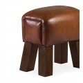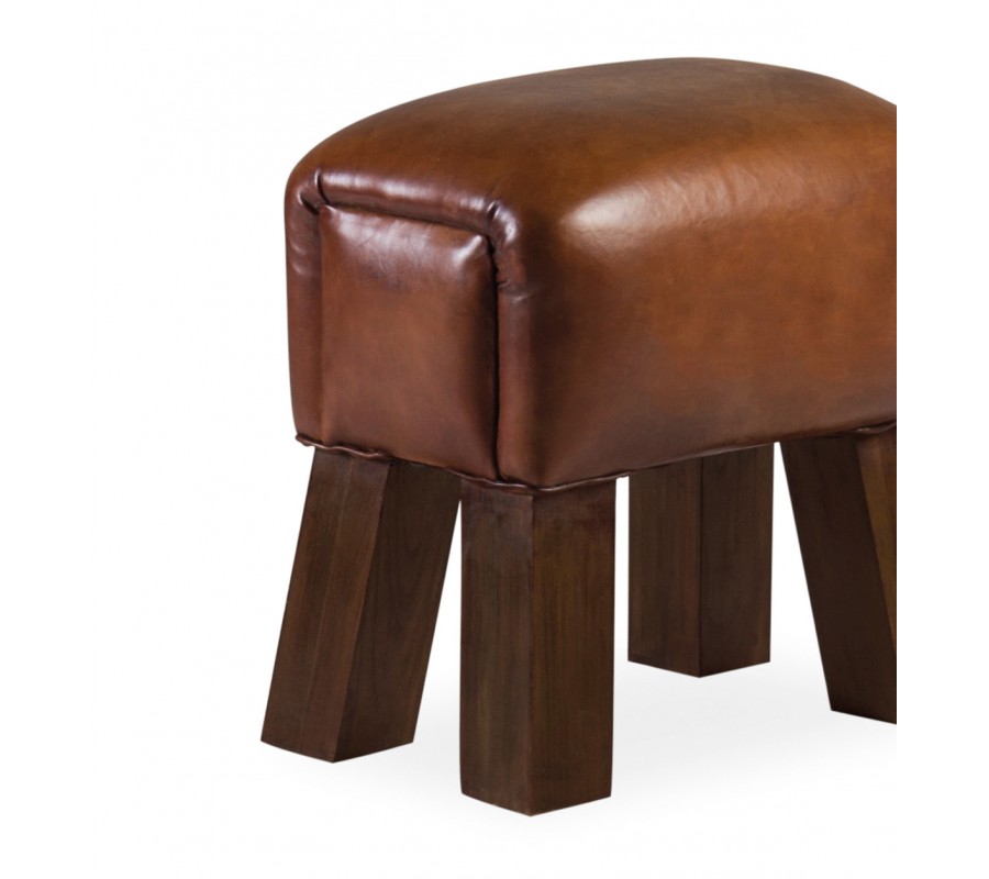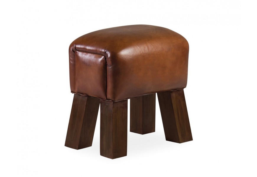 Štýlový originálny taburet s koženým povrchom doplneným masívnymi drevenými nohami poteší a upúta predovšetkým milovníkov masívneho nábytku prírodného vzhľadu. Svoje miesto si nájde hlavne v luxusne zariadených priestoroch, v ktorých dominuje tmavé drevo, či u cestovateľov obľubujúcich klasický, koloniálny štýl.
